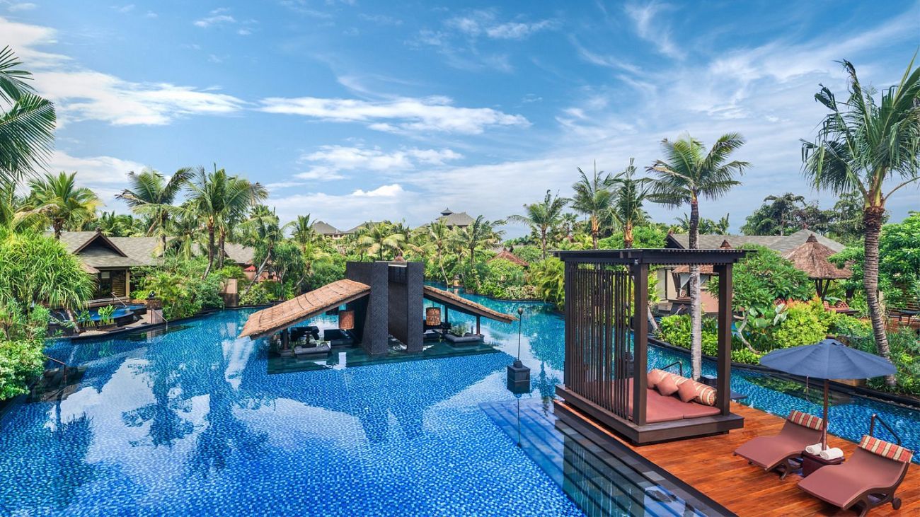Хотелът е разположен на първа линия на плажна ивица със златист пясък в Нуса Дуа.