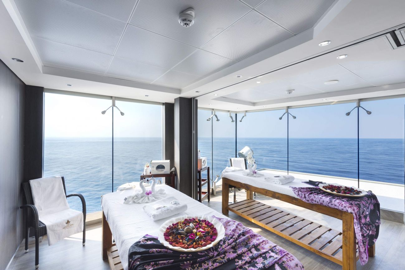 Ауреа Спа с масажи и козметични процедури, фризьор и маникюр, солариум, парна баня.