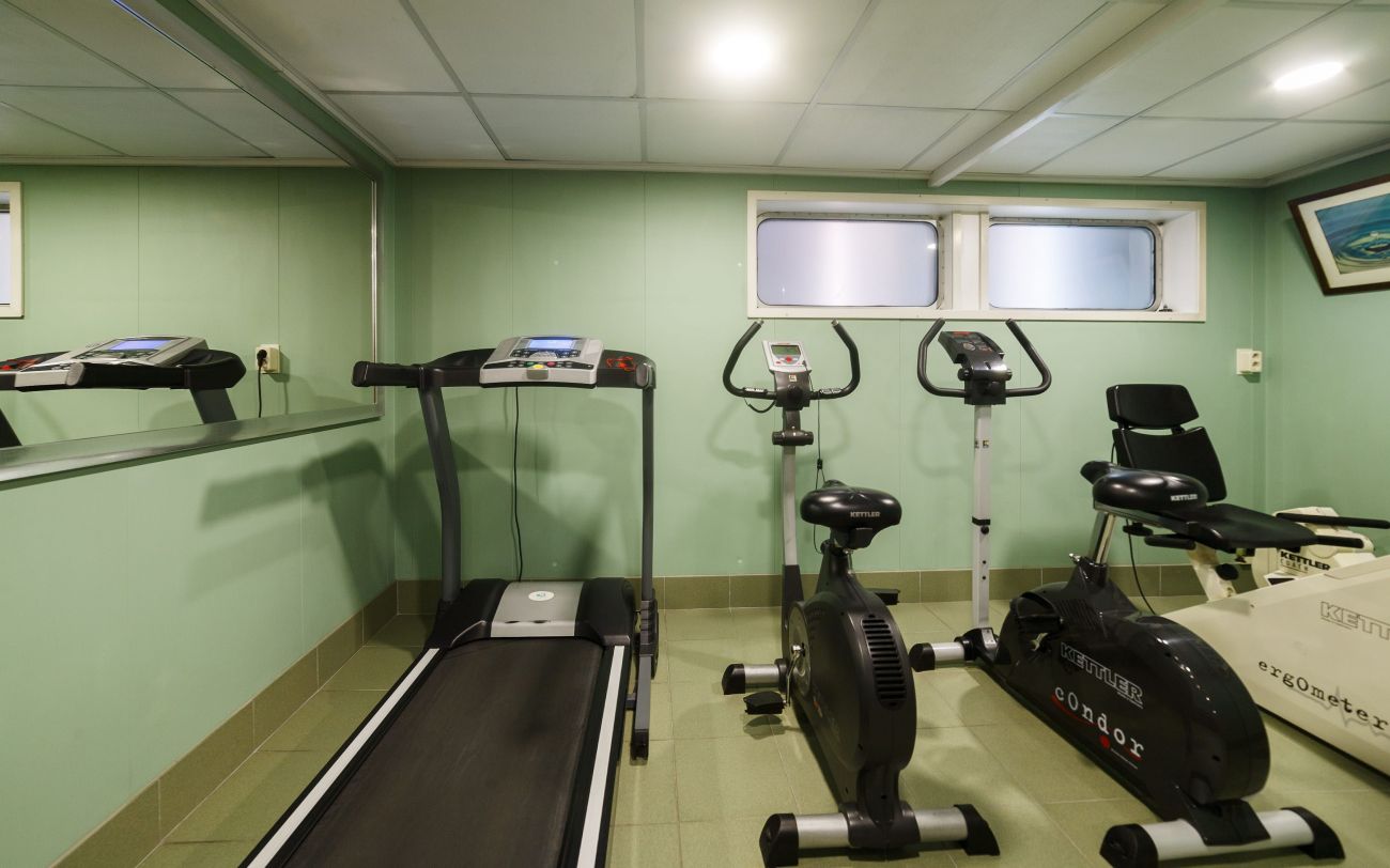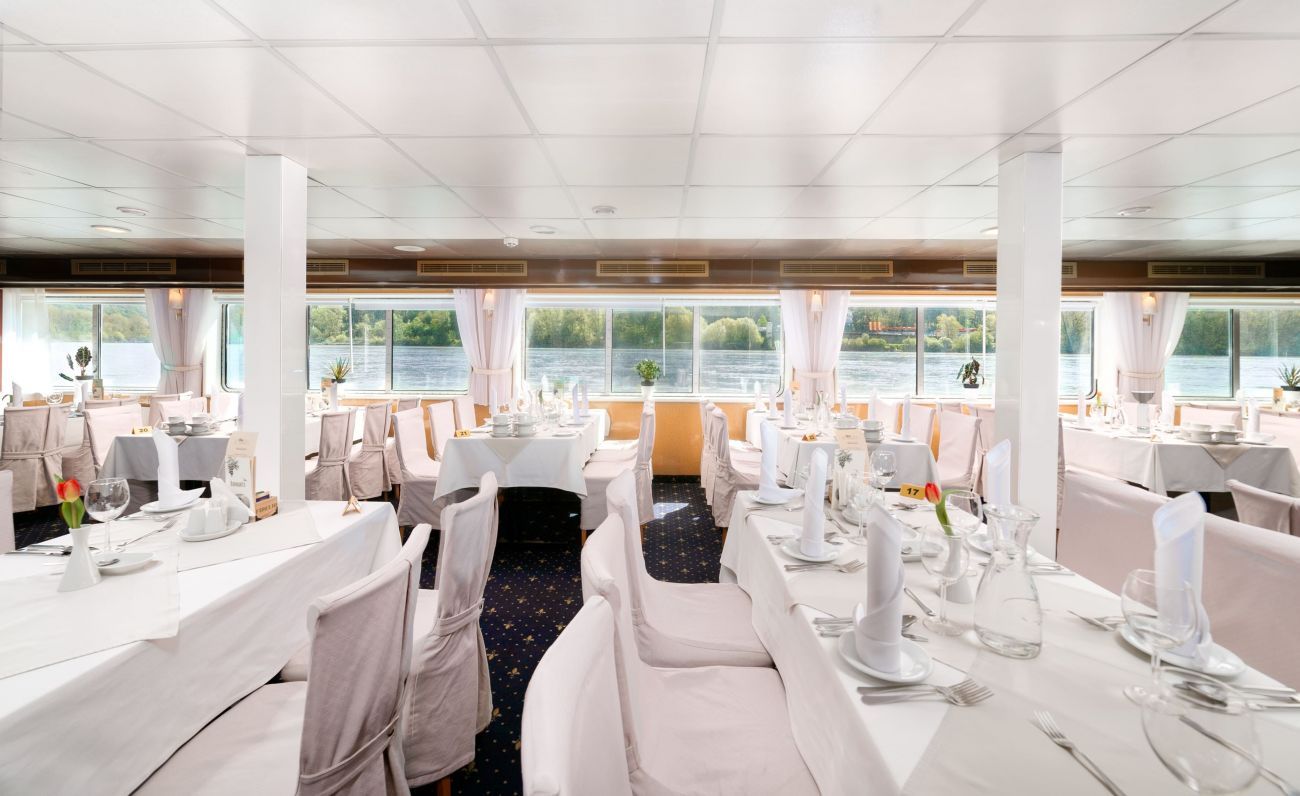 На борда ще откриете, ресторант, панорамен бар, слънчева палуба с шезлонги и басейн, малък фитнес и сауна.
