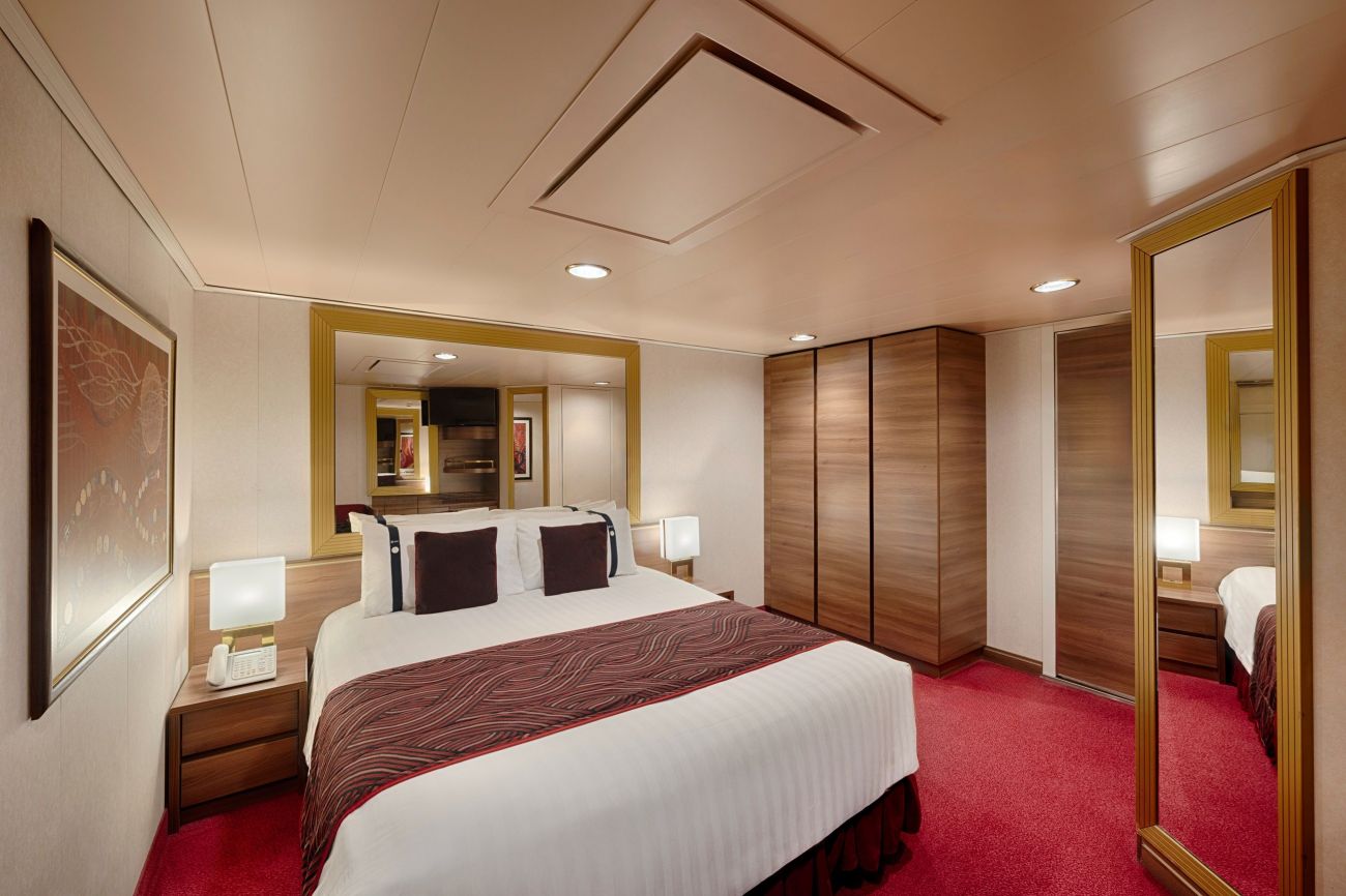 Тук отново можем да избираме между вътрешни кабини, кабини с прозорец или балкон и суити, специални стаи с удобства за инвалиди. Която и категория да вземете, ще имате на разположение модерно обзавеждане, 2 легла, които могат да бъдат събрани или разделени, индивидуален климатик, телевизор, телефон, баня, сешоар, сейф, минибар, интернет.