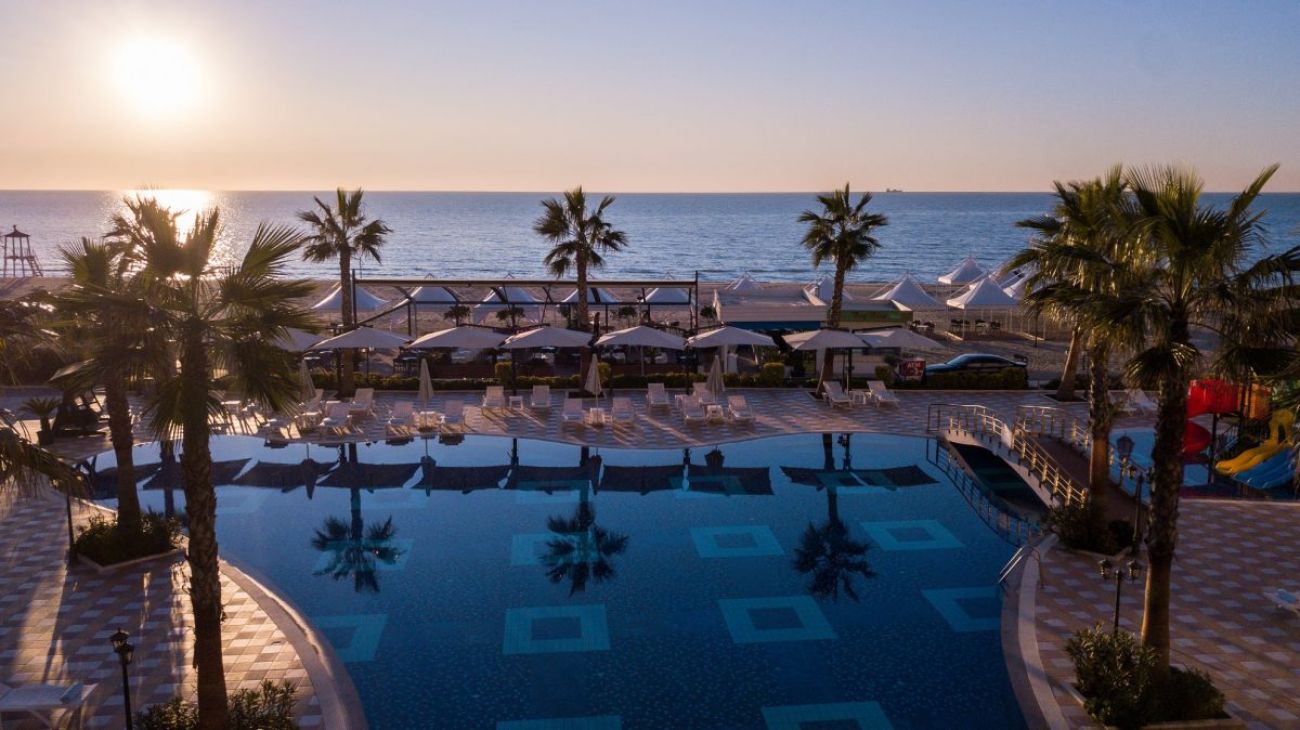Хотелът се намира на 30 км. от летище Майка Тереза, на 12 км от центъра на Дурас, на брега на морето. Построен на обща площ от 20000 м².