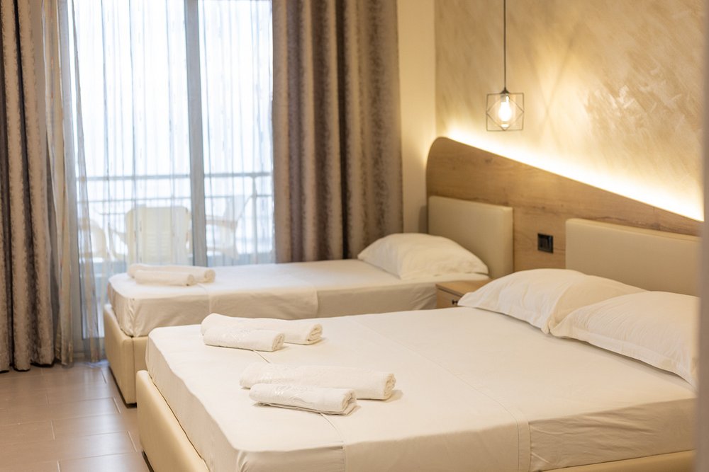 Хотелът се намира на 30 км от летище Тирана, на 3 км от Дуръс, на брега на морето. Пред хотелът има автобусна спирка. Последно реновиран през 2020г.