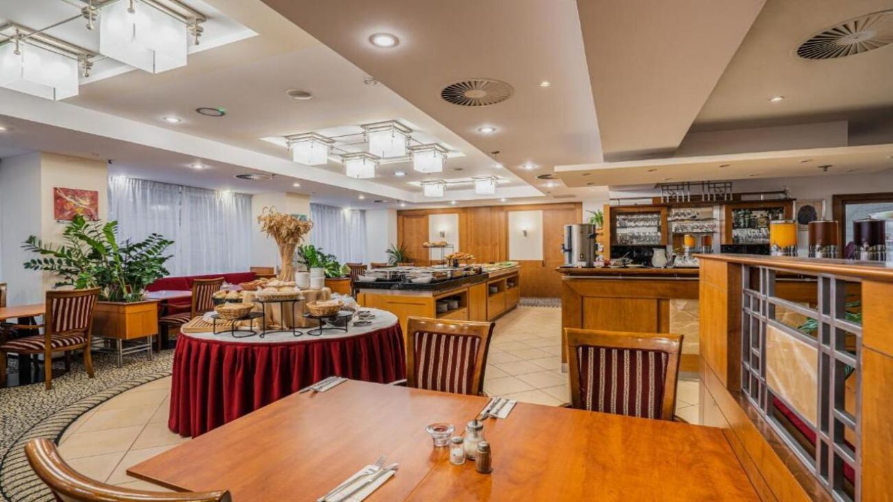 - Хотелът предлага ресторант Symphony, където се сервират чешка и международна кухня – закуска, обяд и вечеря;
