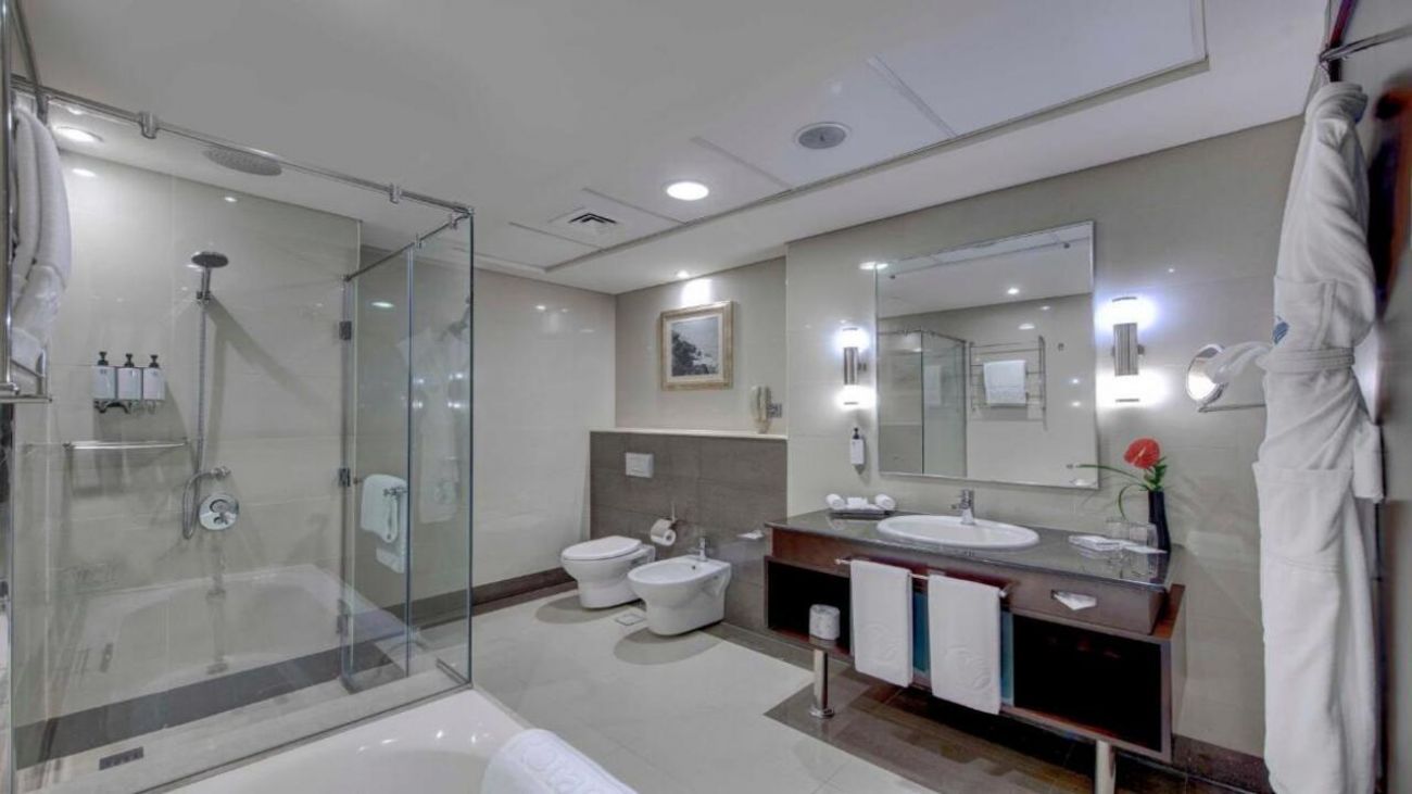 Media Rotana е изискан петзвезден хотел, предлагащ високо ниво на комфорт и обслужване. Разполага с голям открит басейн, просторна тераса, модерен фитнес, спа център, няколко ресторанта и барове, конферентни зали и богата гама услуги. Интериорът е елегантен и подчертава премиум атмосферата на веригата Rotana.