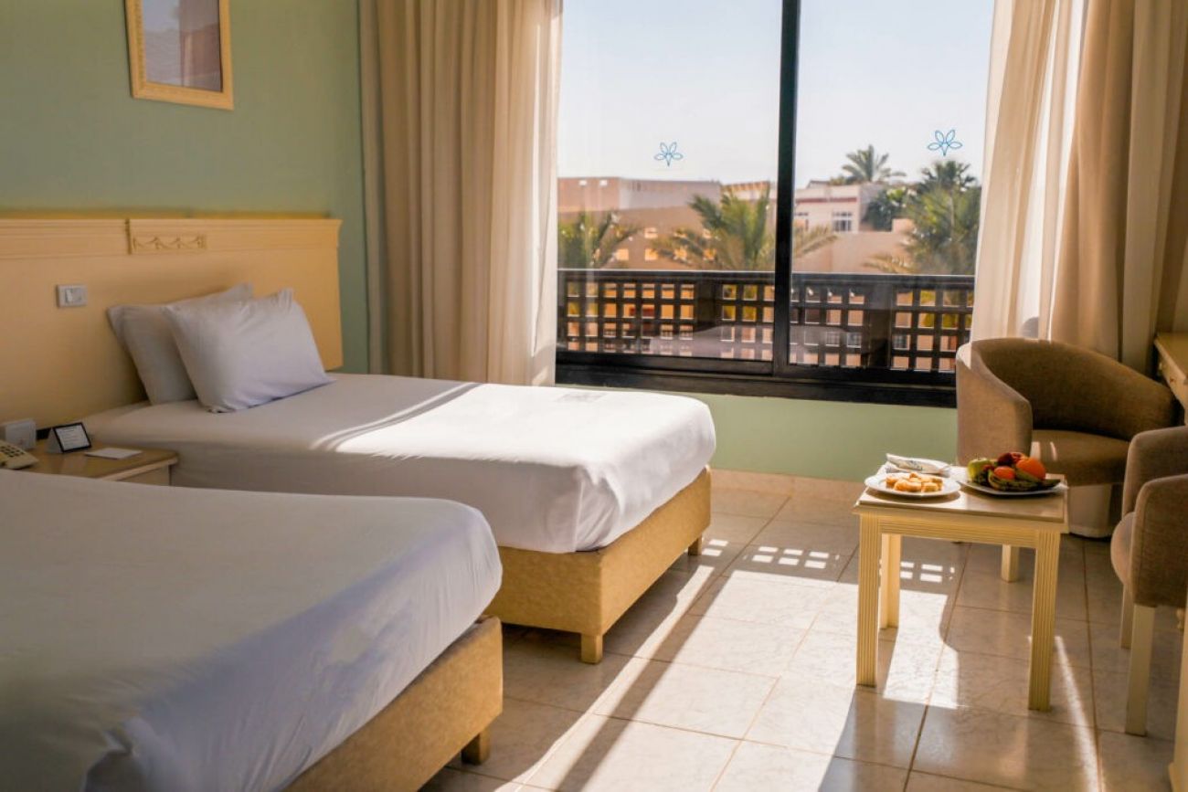 Разположение: Хотелът се намира на 17 км от летище Хургада, на 23 км от центъра на Хургада, на брега на морето (плажа е на разстояние 700 м от рецепция)