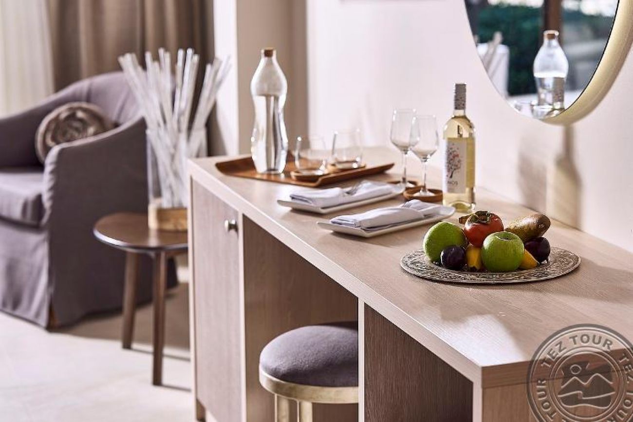 VIP Bungalow Sea Front (в двуетажна сграда до морето, 1–2 етажа, с фронтална гледка към морето, основно легло - 2 единични легла (двойни при поискване), допълнителен диван, с басейн с морска вода, отделно за това категория стаи, вода, плодове, кафе/чай (ежедневно попълване, при поискване), вечерно почистване, макс. 3 души, 23-25 m2);