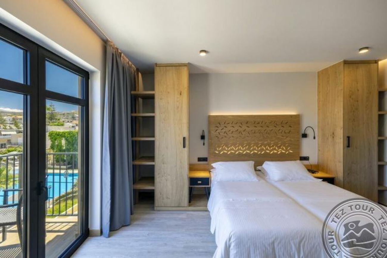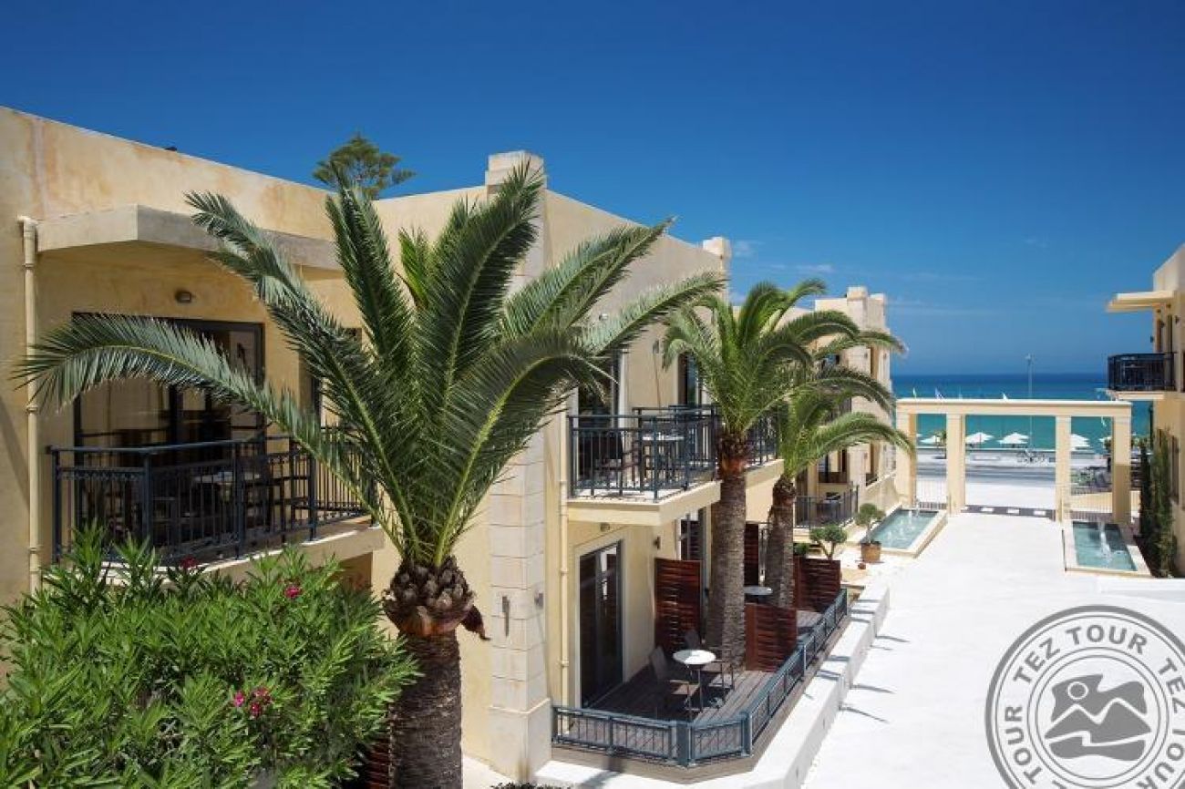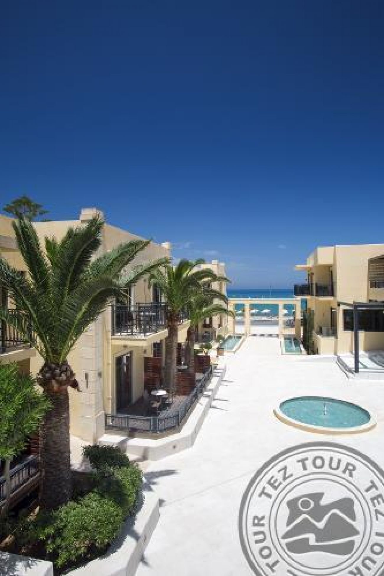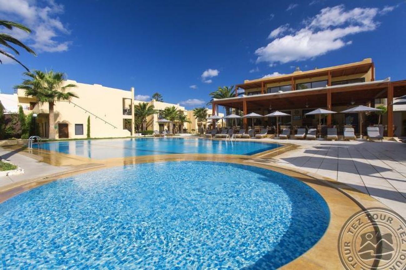 28, ARI VELOUCHIOTI STR. Хотелът е разположен на 76 км от г. Хераклион, на брега на морето, а на около 15 минути пеша от хотела е стария град Ретимно.До хотела има автобусна спирка. Вечерни развлечения - г. Ретимно (1 км). Последна реновация през 2009 г.Обща площ 7000 м2, от които 4000 м2 са градини, а сградите и басейните 3000 м2.Състои се от основен корпус и комплекс бунгала. Общо 70 стаи:standard GV/PV/SV/SSV (2 единични легла, допълнителни легла 1 или 2 разтегаеми легла, макс. 3+1 чов., 2224 м2);estate suite (2 спални със сгъваема врата, 2 единични легла, допълнителни легла 2 единични легла, макс. 4 чов., 2832 м2);junior suite 2 стаи, една от тях с джакузи в спалнята, другата с джакузи в банята, 2 единични легла, макс. 2 чов., 2628 м2).Разплащания с кредитни карти: Visa, MasterCard, American ExpressБанкомат: до хотела (30 м)настаняване с животни: не е разрешено