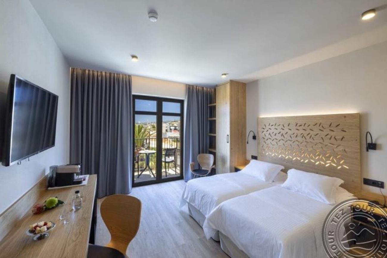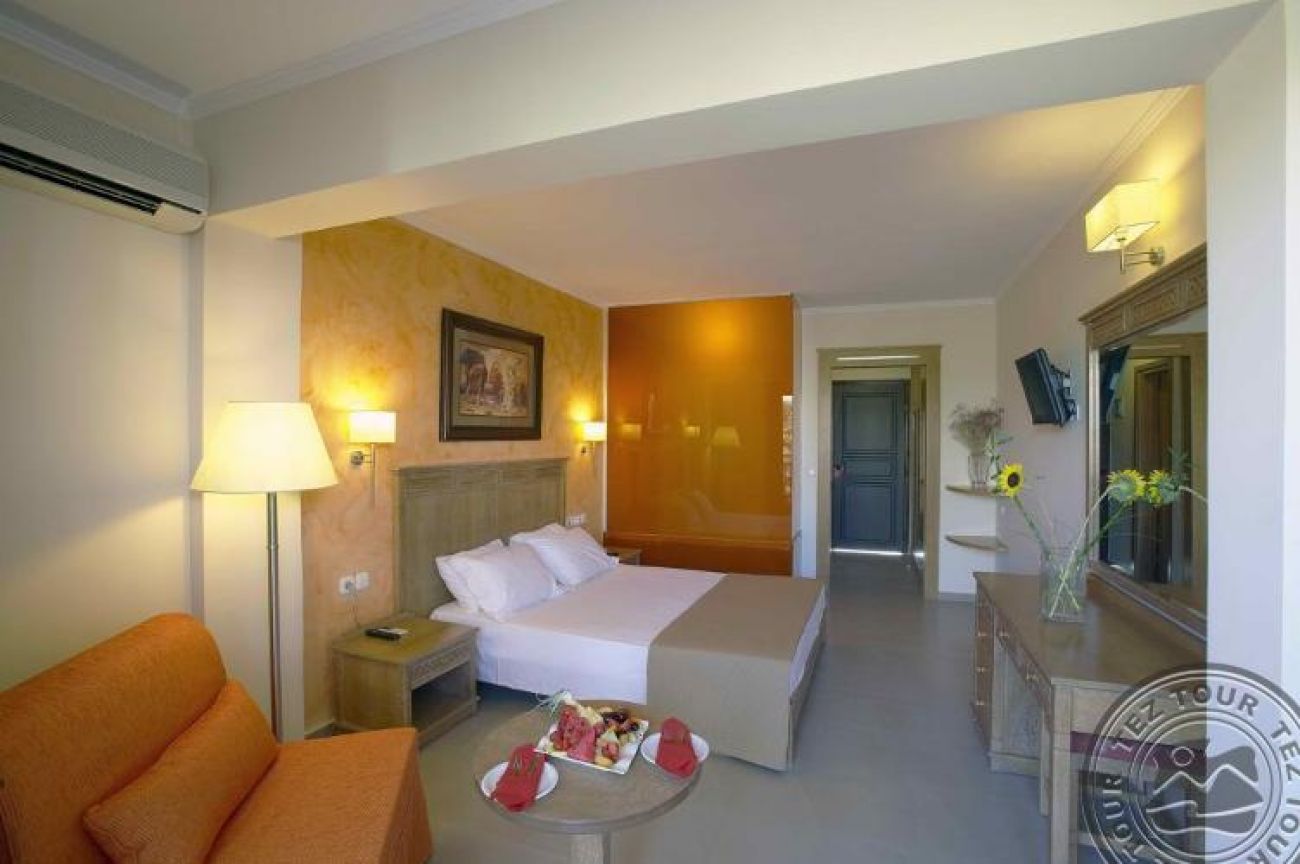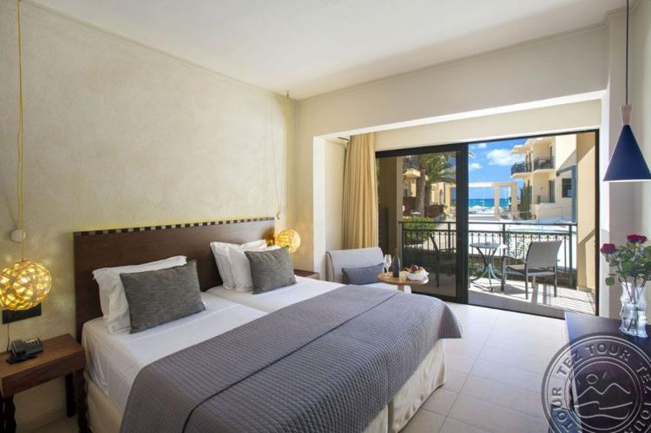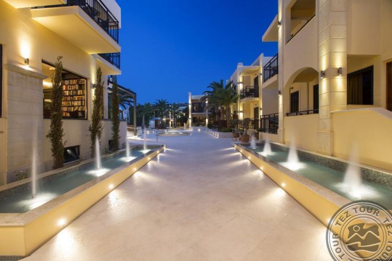 28, ARI VELOUCHIOTI STR. Хотелът е разположен на 76 км от г. Хераклион, на брега на морето, а на около 15 минути пеша от хотела е стария град Ретимно.До хотела има автобусна спирка. Вечерни развлечения - г. Ретимно (1 км). Последна реновация през 2009 г.Обща площ 7000 м2, от които 4000 м2 са градини, а сградите и басейните 3000 м2.Състои се от основен корпус и комплекс бунгала. Общо 70 стаи:standard GV/PV/SV/SSV (2 единични легла, допълнителни легла 1 или 2 разтегаеми легла, макс. 3+1 чов., 2224 м2);estate suite (2 спални със сгъваема врата, 2 единични легла, допълнителни легла 2 единични легла, макс. 4 чов., 2832 м2);junior suite 2 стаи, една от тях с джакузи в спалнята, другата с джакузи в банята, 2 единични легла, макс. 2 чов., 2628 м2).Разплащания с кредитни карти: Visa, MasterCard, American ExpressБанкомат: до хотела (30 м)настаняване с животни: не е разрешено