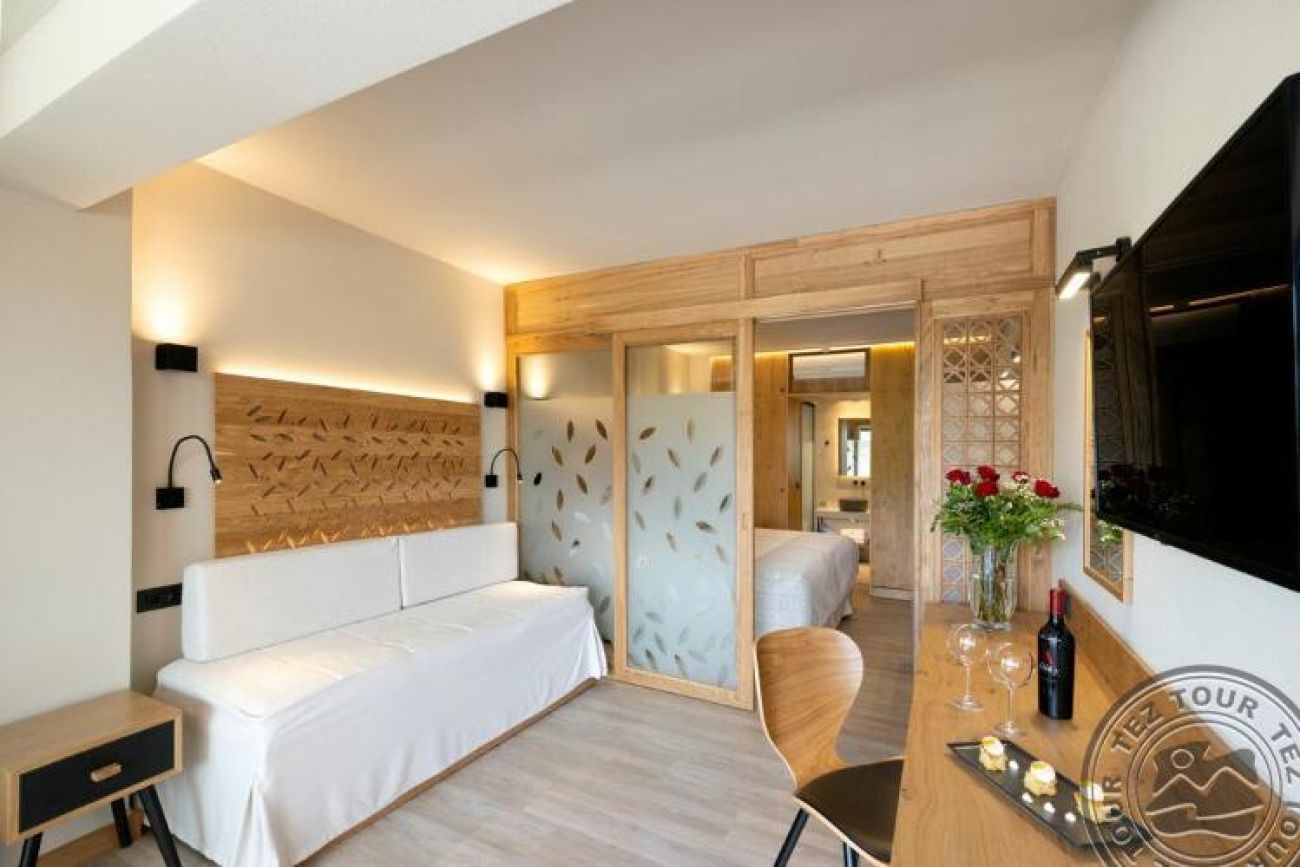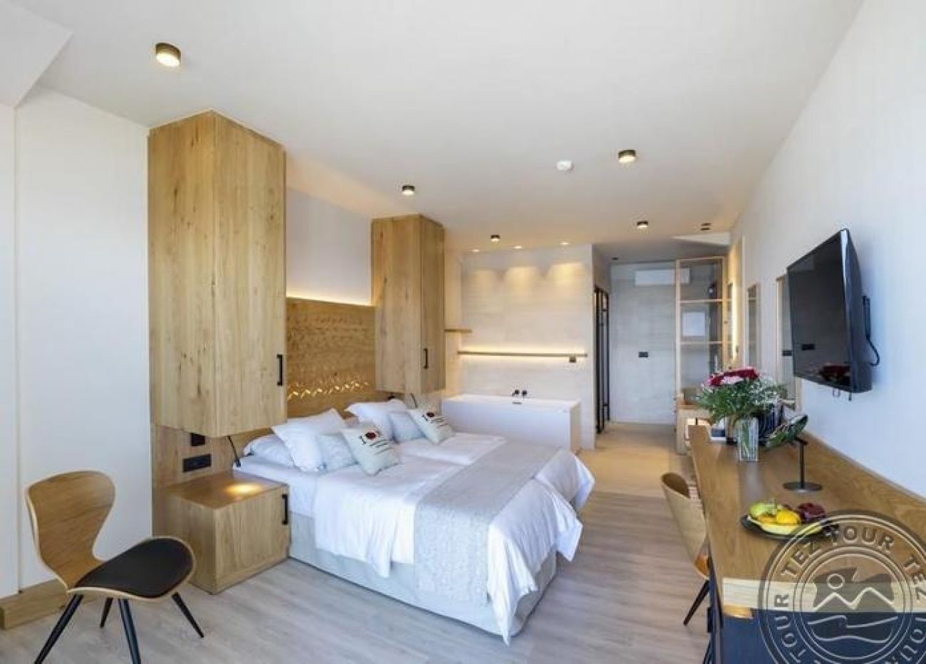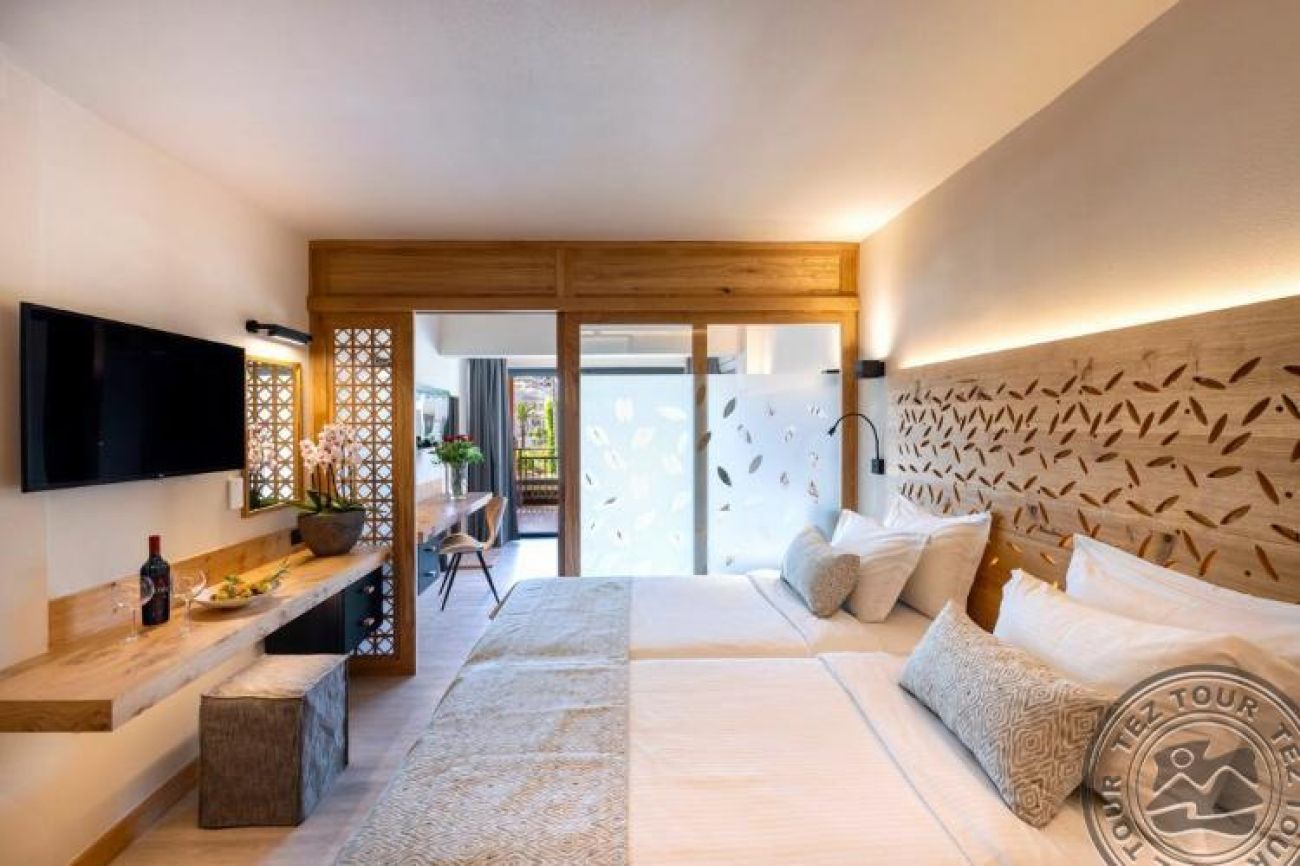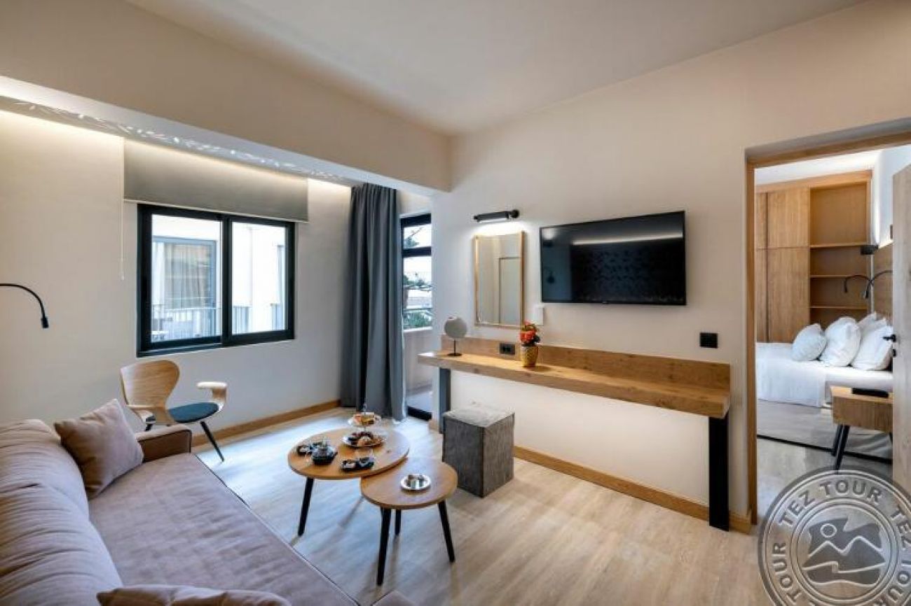 28, ARI VELOUCHIOTI STR. Хотелът е разположен на 76 км от г. Хераклион, на брега на морето, а на около 15 минути пеша от хотела е стария град Ретимно.До хотела има автобусна спирка. Вечерни развлечения - г. Ретимно (1 км). Последна реновация през 2009 г.Обща площ 7000 м2, от които 4000 м2 са градини, а сградите и басейните 3000 м2.Състои се от основен корпус и комплекс бунгала. Общо 70 стаи:standard GV/PV/SV/SSV (2 единични легла, допълнителни легла 1 или 2 разтегаеми легла, макс. 3+1 чов., 2224 м2);estate suite (2 спални със сгъваема врата, 2 единични легла, допълнителни легла 2 единични легла, макс. 4 чов., 2832 м2);junior suite 2 стаи, една от тях с джакузи в спалнята, другата с джакузи в банята, 2 единични легла, макс. 2 чов., 2628 м2).Разплащания с кредитни карти: Visa, MasterCard, American ExpressБанкомат: до хотела (30 м)настаняване с животни: не е разрешено