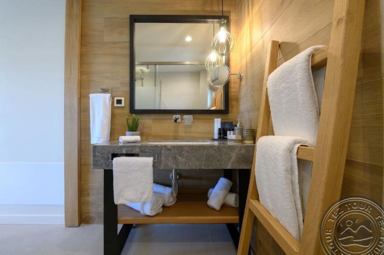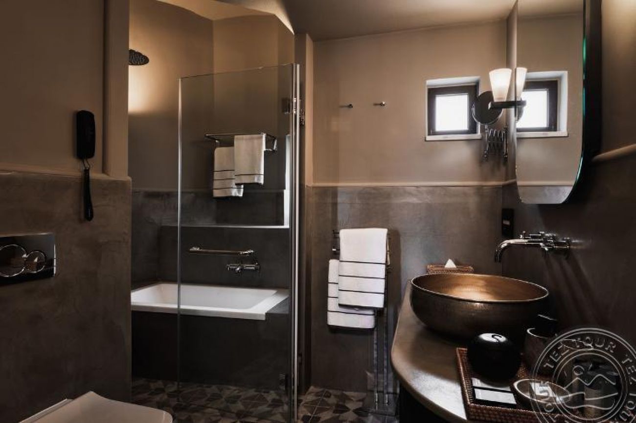 Domes Luxuty Villa Two bedrooms with private pool (макс. 4 + 1 души, 220-250 м2) & Domes Luxuty Villa Three bedroom with private pool (макс. 6 + 1 души, 450 м2). Всяка вила се състои от напълно оборудвана кухня, камина, 2 или 3 спални, 2 или 3 бани (душ кабина включва парни процедури), частна веранда, тераса и частен басейн (с отопление, при поискване - срещу заплащане, 35 м2);