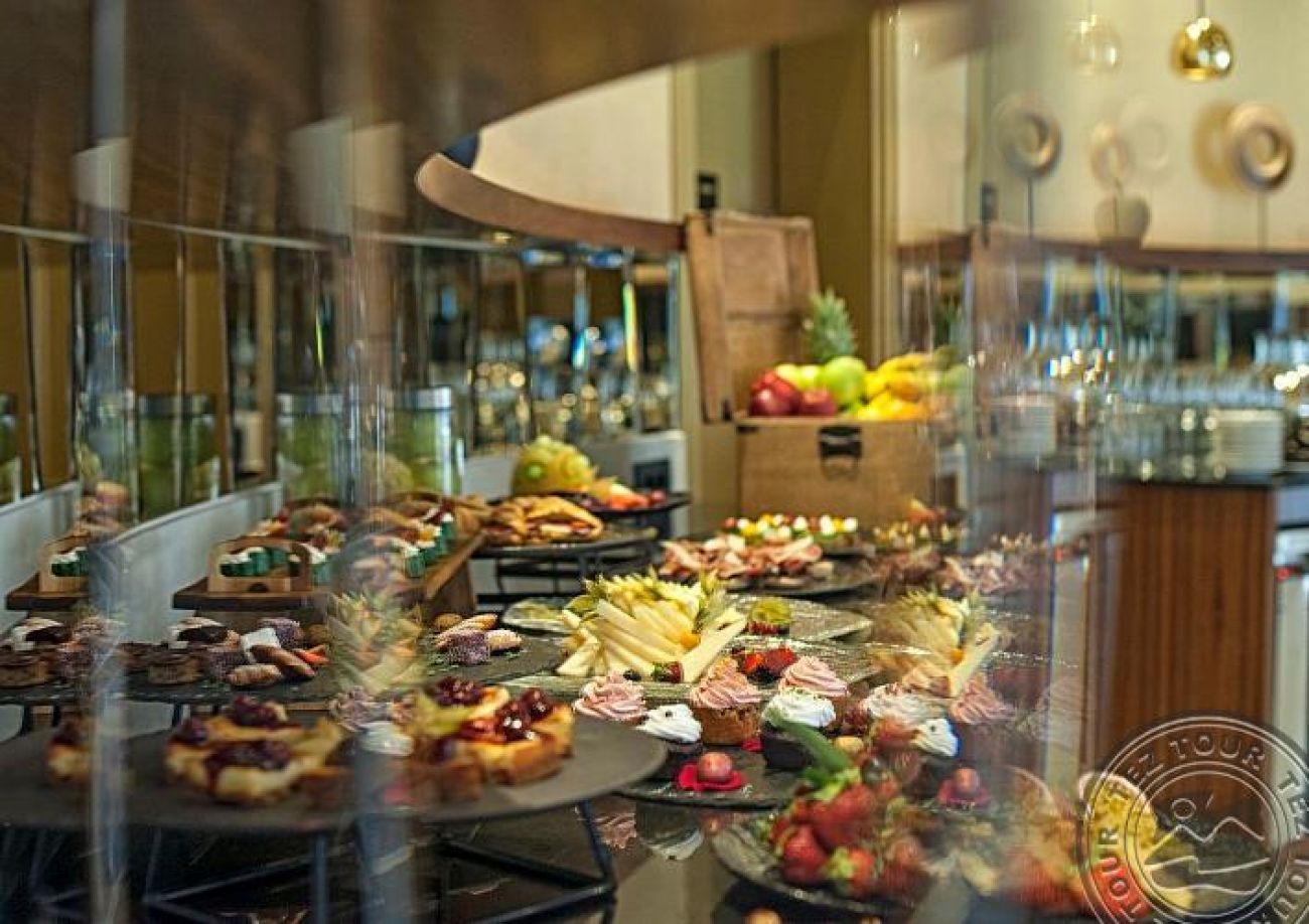 Избор от 4 ресторанта (Tholos, Yaosai, Topos 1910 и Blend). Ресторант Blend има зона само за възрастни.