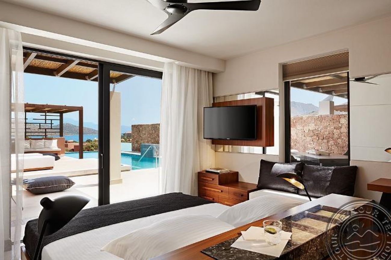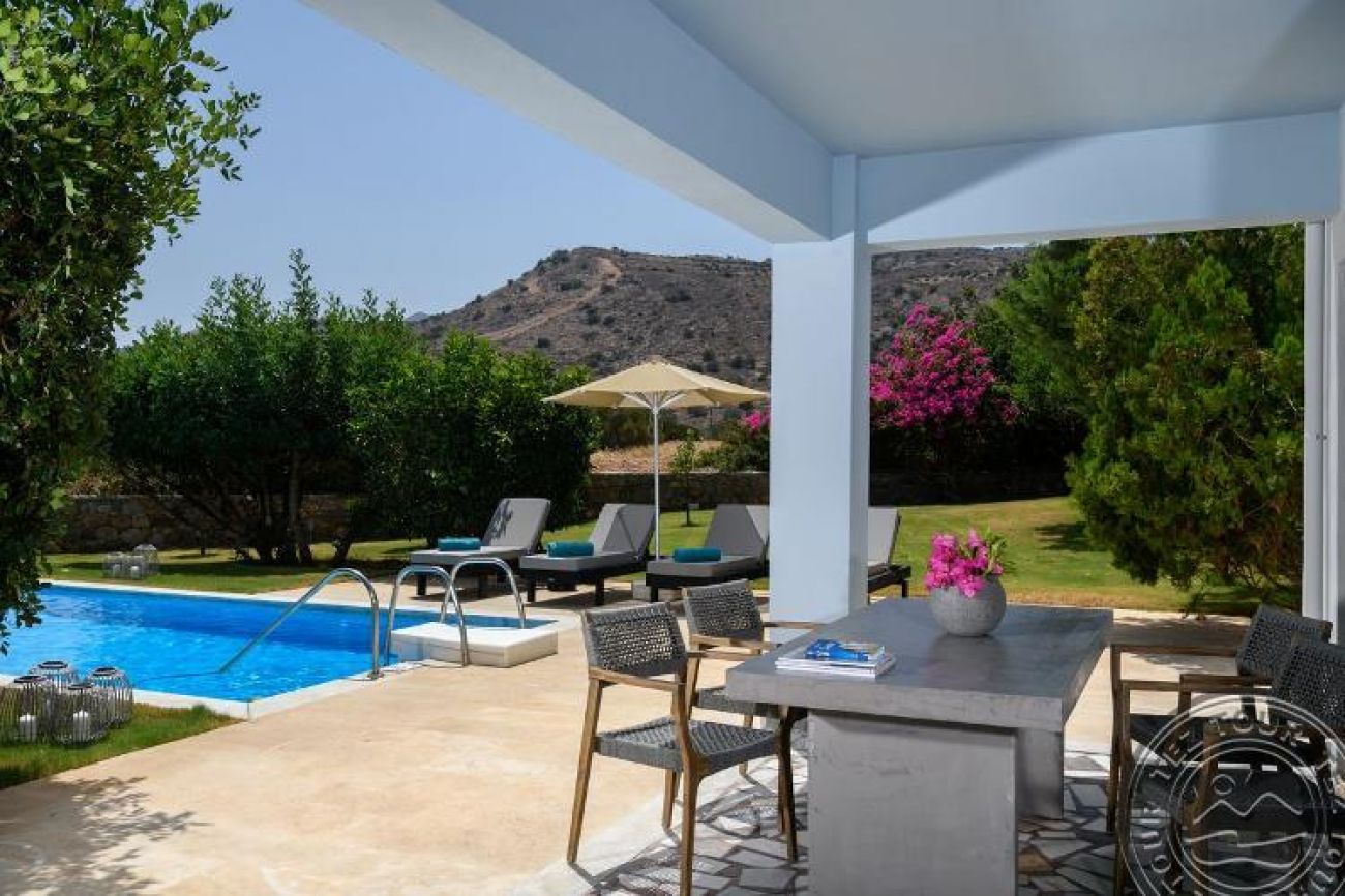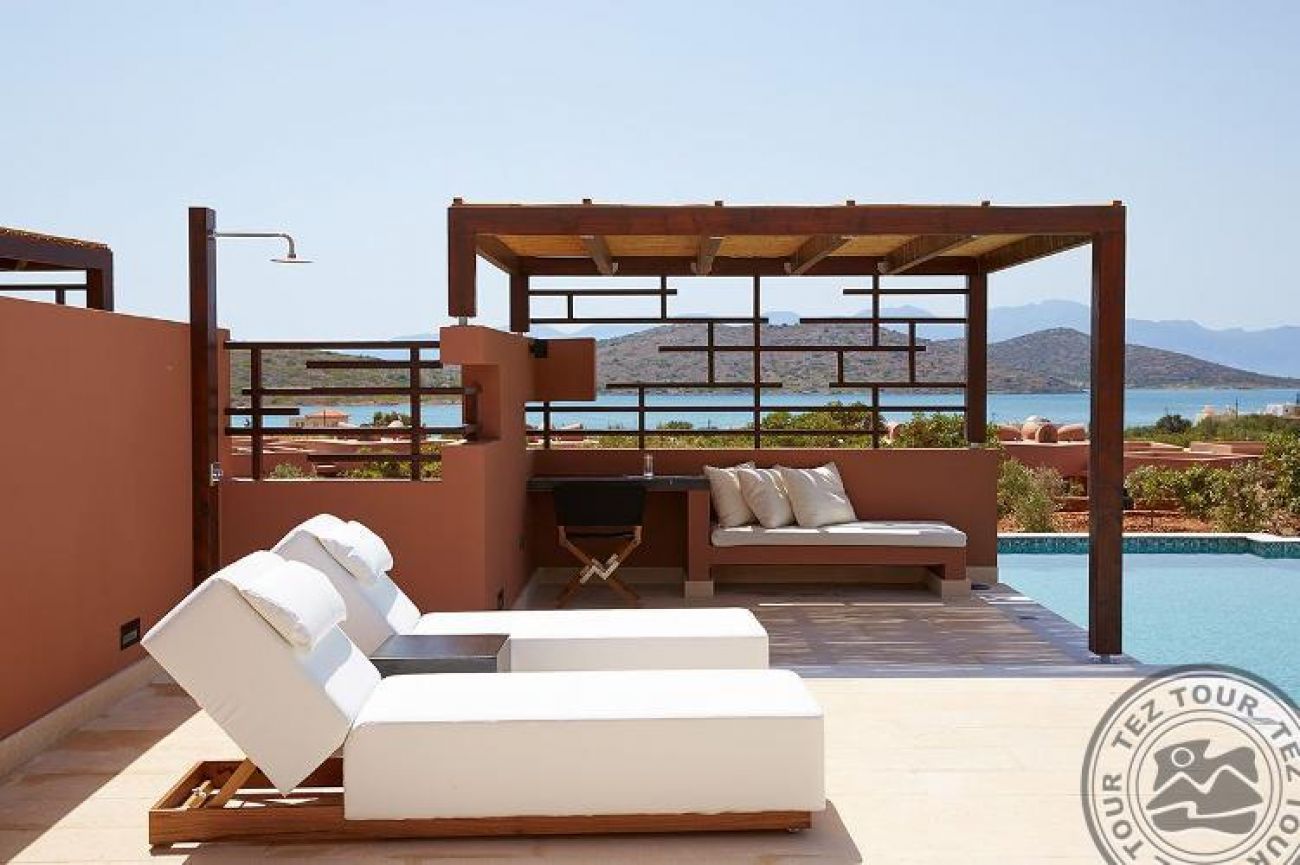 Luxury Villas са предназначени за нашите най-ексклузивни клиенти. Те са разположени далеч от основната част на курорта и имат изглед към залива Мирабело. Всяка вила е уникален пример за архитектура и дизайн. За гостите на вилите има специални привилегии, включително SPA процедури във вилата и лични услуги за гости (денонощно, при поискване, срещу допълнително заплащане). Всички вили са разположени на хълм с панорамна гледка към морето на остров Спиналонга.