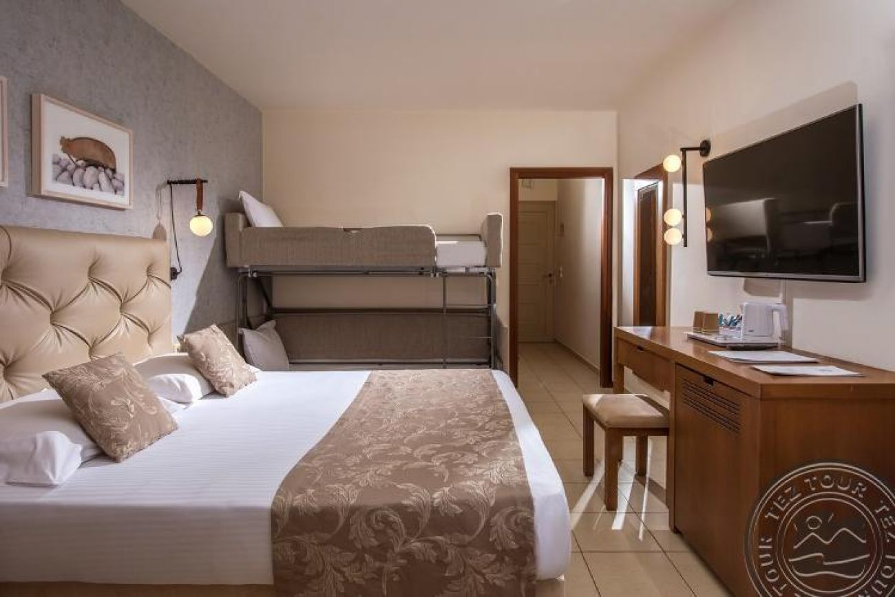 Family room two bedroom (две стаи със свързваща врата, осн. легло спалня, доп. 2 единични легла, 1 баня, има и стаи с две бани, макс. 4 или 2+3 чов., 42 м2),Има възможност за обединяване на стаи (standard).