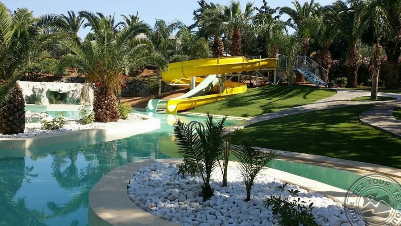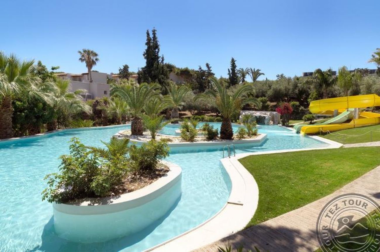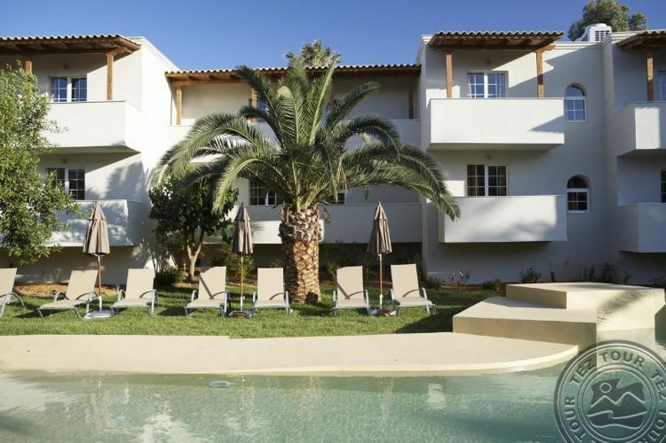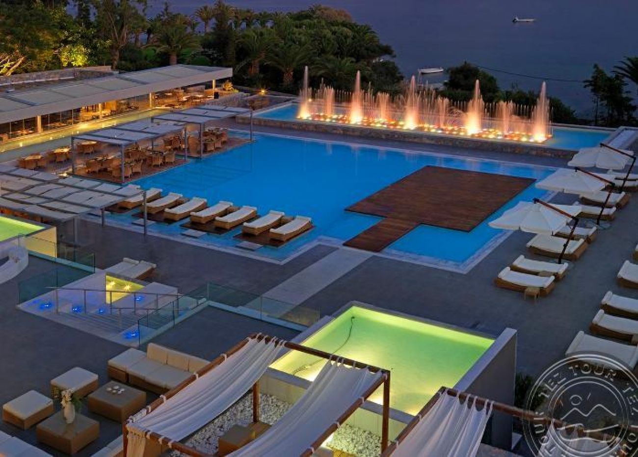 Вечерни забавления: село Агия ПелагияОбщата площ е 672 000 м2. Хотелът се състои от 3 основни сгради, бунгалови сгради и луксозни апартаменти, мезонети и вили. Хотелът е построен през 1980 г., последната реновация е извършена през 2015 г. Вили са построени през 2008-2018г.