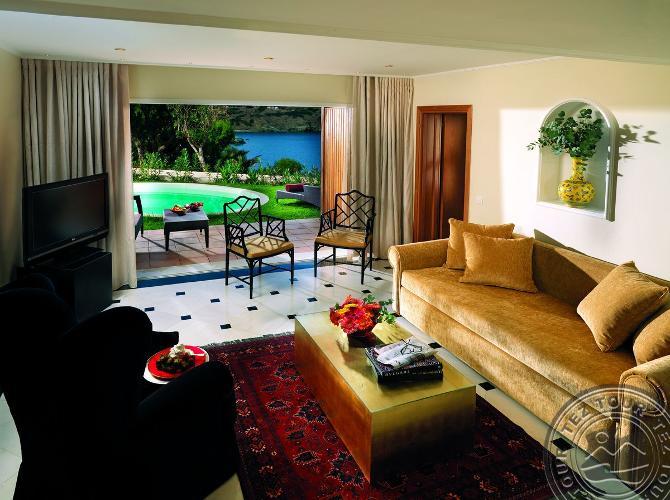 Exclusive Junior Suite Private Jacuzzi/Pool (разположен в основната сграда, индивидуално джакузи, основно легло - двойно, допълнително - сгъваемо легло или разтегателен диван, привилегии Exclusive Collection, макс. 2 + 1 души, 48 m2)