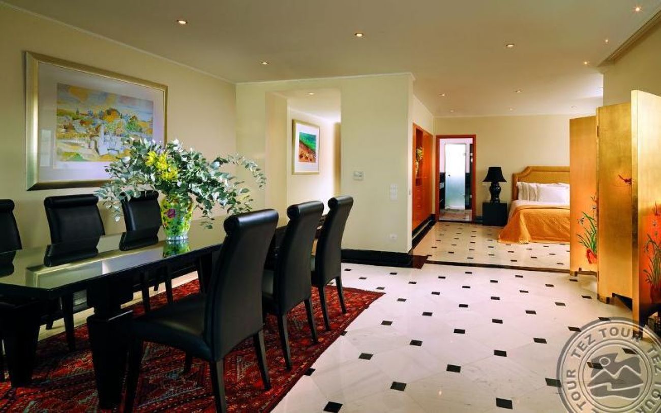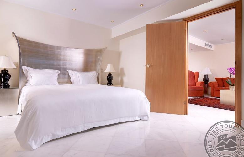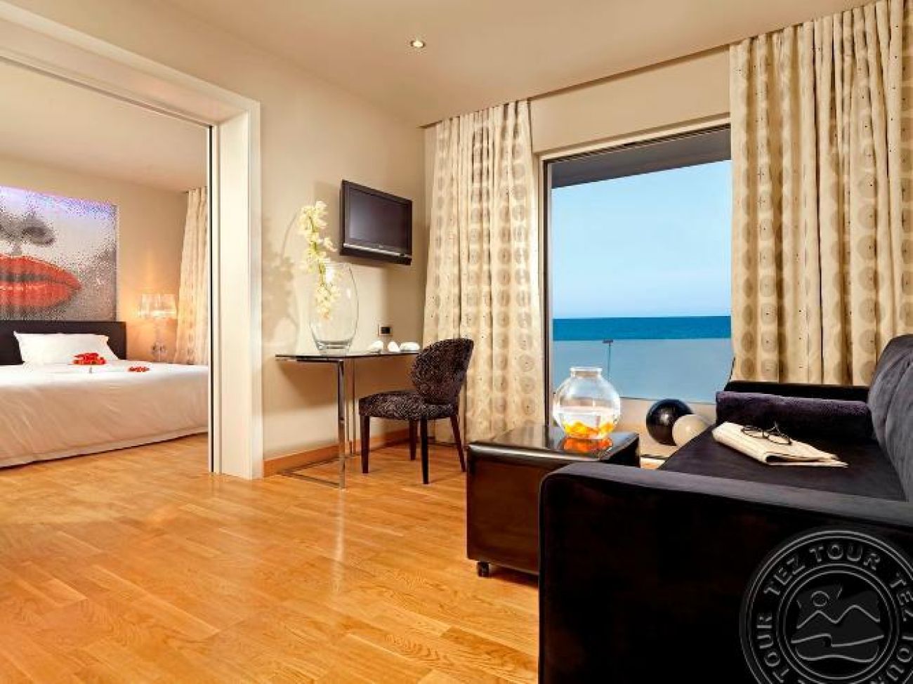 Exclusive 1 Bedroom Suite SV (намира се в основната сграда, изглед към морето, спалня и всекидневна, основно легло - двойно, допълнително - разтегателен диван, привилегии Exclusive Collection, макс. 3 + 1 човека, 50-60 м2)