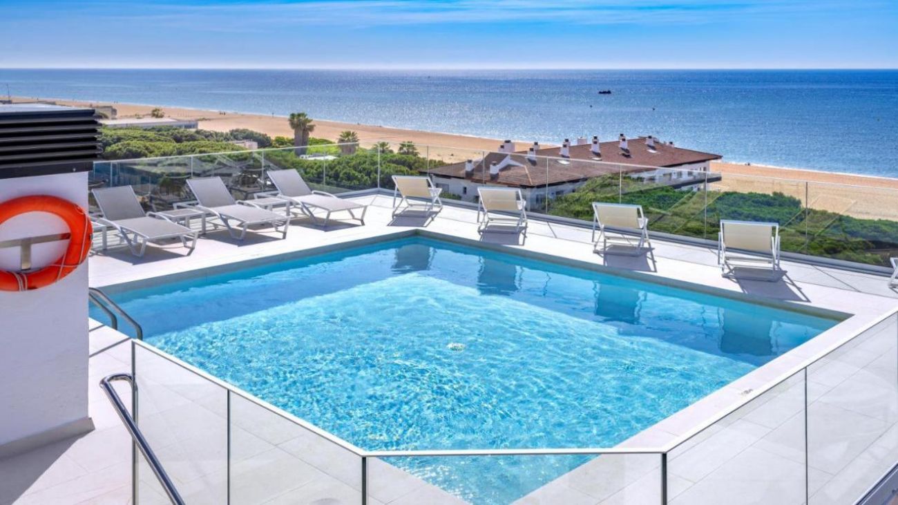 панорамен басейн на покрива (само за гости над 18 г.), предлагащ впечатляваща гледка към Средиземно море,