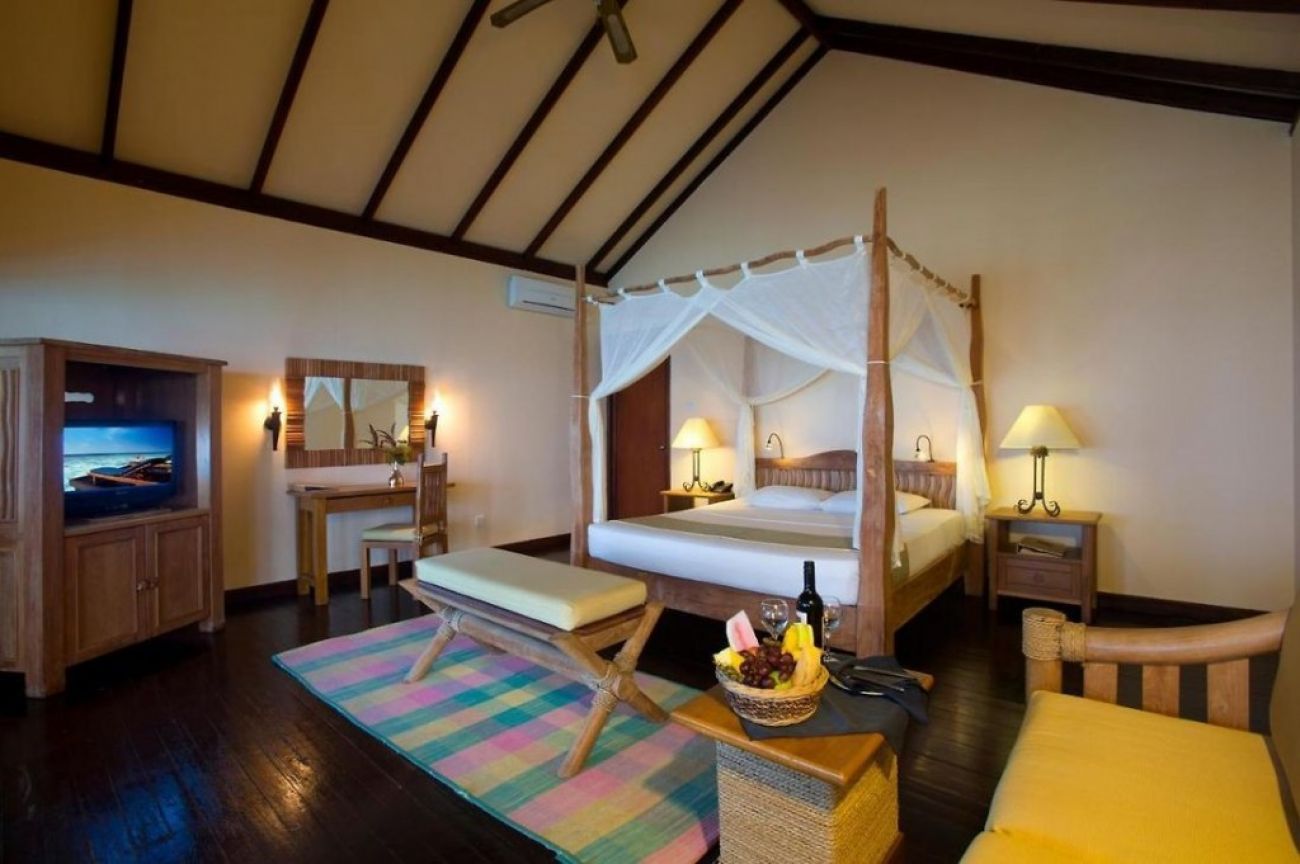 В стаите: Хотелът разполага със 118 вили, три вида настаняване - superio villa,deluxe villa и вила над водата. Те са оборудвани с климатик, телевизор, сателитна телевизия, вентилатор, минибар, сейф, електрическа кана, набор за приготвяне на чай/кафе, халат, сешоар, машина за бръснене, репелент за комари, шезлонги, тоалетни принадлежности.