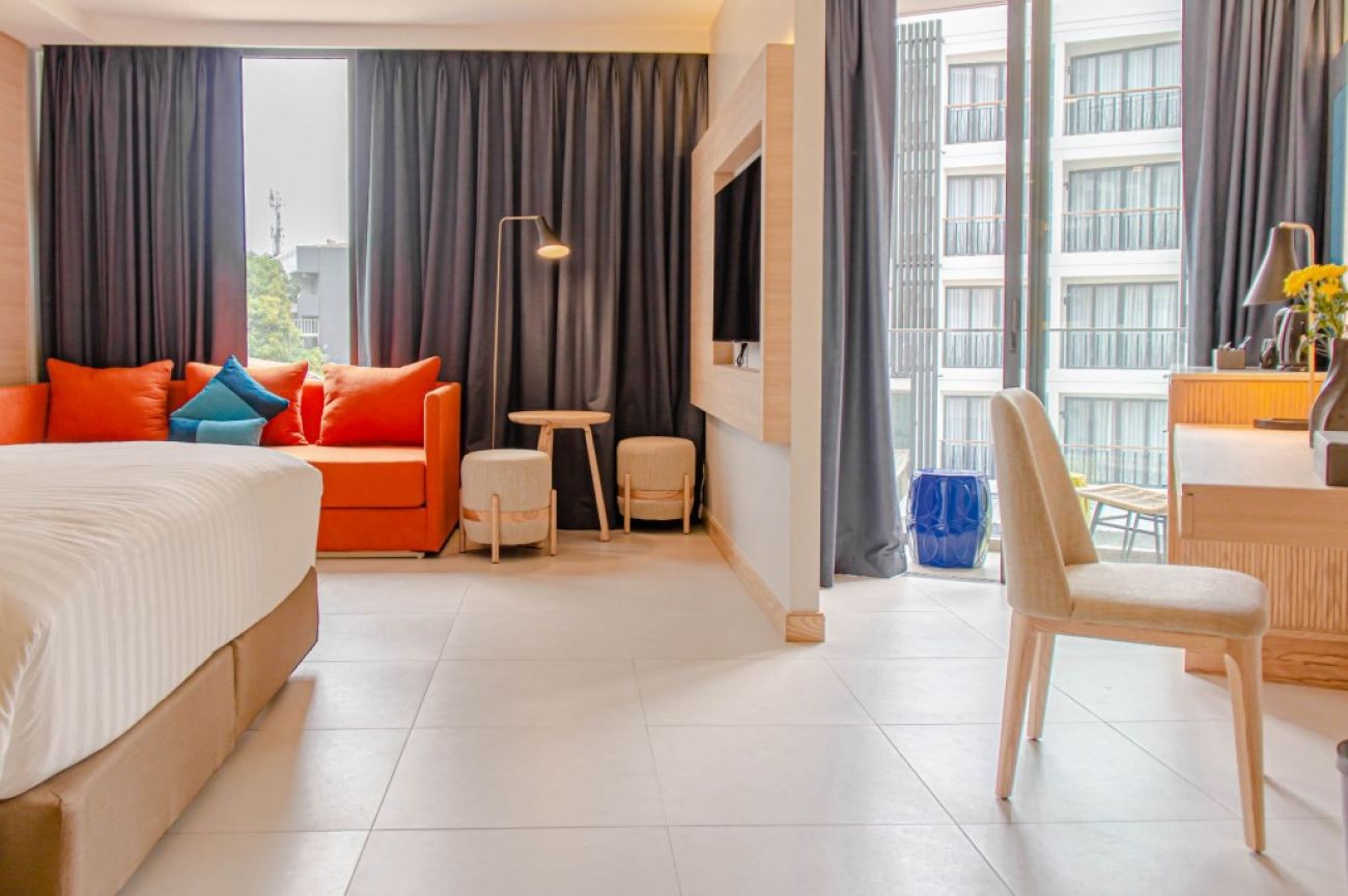 Premier Triple Room – 36 м2, Тройната стая Премиер разполага със същите привлекателни характеристики като Супериорната тройна стая, но с различно оформление и стил на стаята. Тя предлага удобно двойно легло king size, допълнителен разтегателен диван, практичното работно пространство. Ъгловият балкон осигурява кът за сядане с изглед към езерото и частичен изглед към Андаманско море.