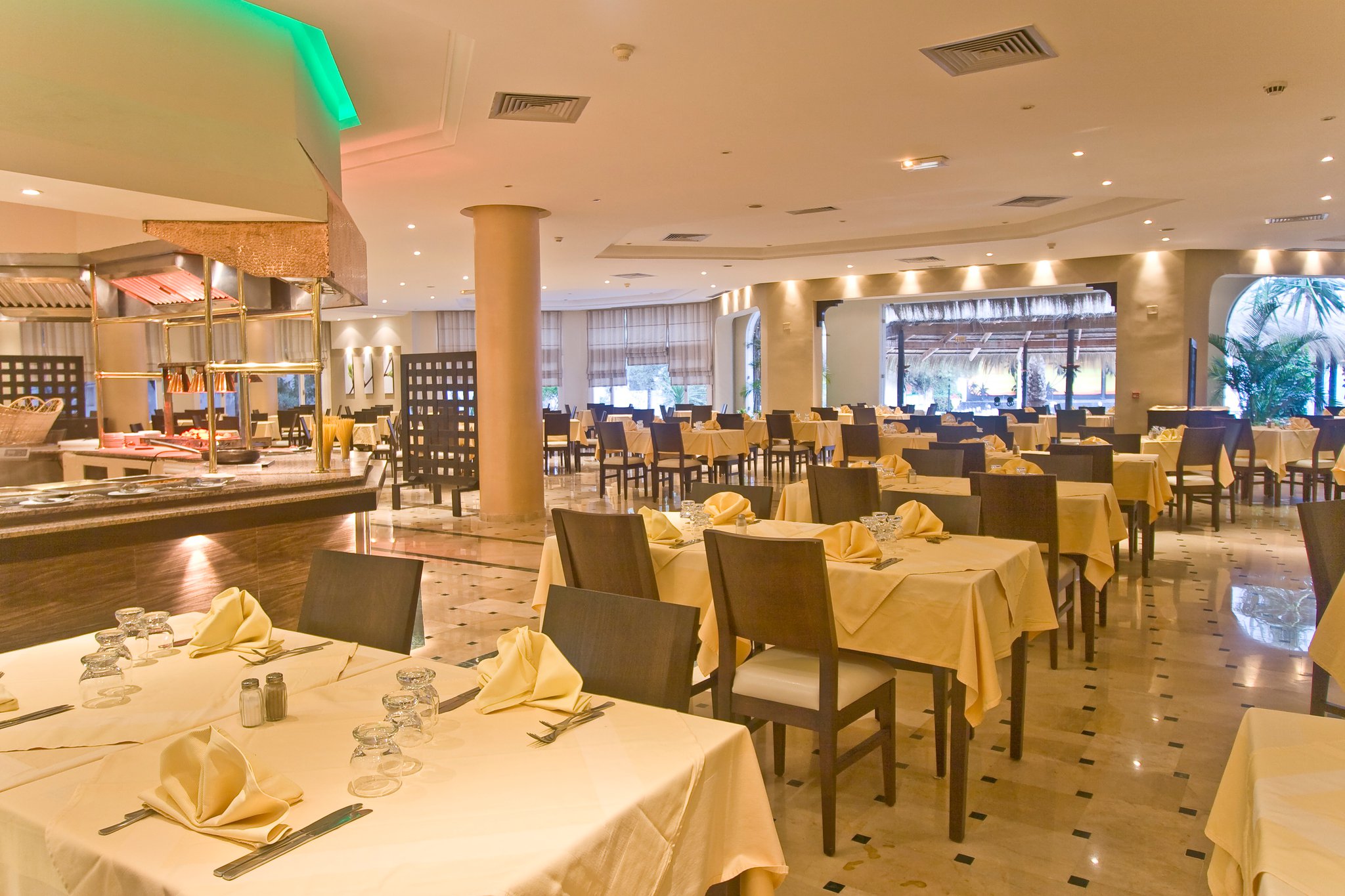 Основен ресторант Nedra, а ла карт ресторант Le Jardin (срещу заплащане, с право на едно безплатно посещение за престоя във висок сезон и с предварителна резервация), а ла карт средиземноморски ресторант (срещу заплащане, само във висок сезон) лоби бар, бар на басейна, бар на плажа Mamaia (само във висок сезон, алкохолни напитки платени), анимация, 2 открити басейна, 2 водни пързалки, закрит басейн (отопляем), денонощна рецепция, СПА център, сувенирен магазин, обмяна на валута.