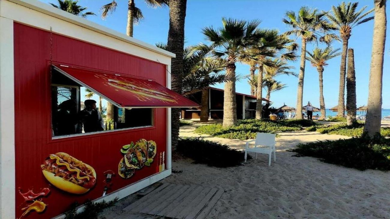 Основен ресторант Oasis, барбекю ресторант Neptune, а ла карт вечеря с италианска и рибна кухня (срещу заплащане, едно безплатно посещение за престой, след предварителна резервация), а ла карт ресторант Le Baron с тунизийска кухня (срещу заплащане, едно безплатно посещение за престой, след предварителна резервация), лоби бар, бар басейн Tiki, плажен бар, американски бар (срещу заплащане), диско бар, мавританско кафене, анимация, външен басейн, закрит басейн (отопляем през зимата), конферентна зала, 24 часова рецепция.