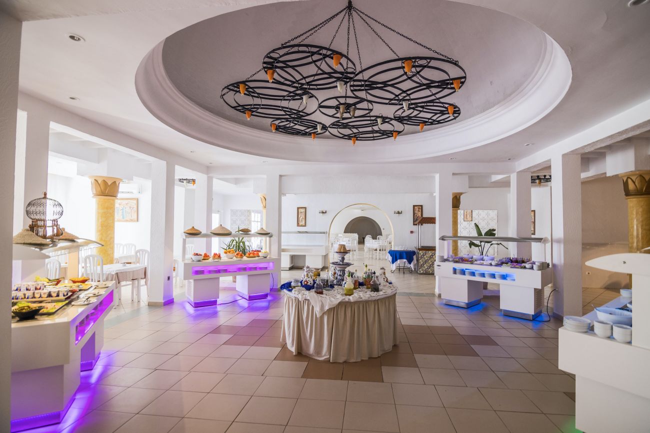 На територията на хотела има основен ресторант, лоби бар, бар до басейна, бар на плажа (безалкохолни напитки и бира), мавританско кафене (доплащане за наргиле), Chill-out бар (доплащане за наргиле), открит басейн, закрит басейн, Спа център (с доплащане), сувенирен магазин,