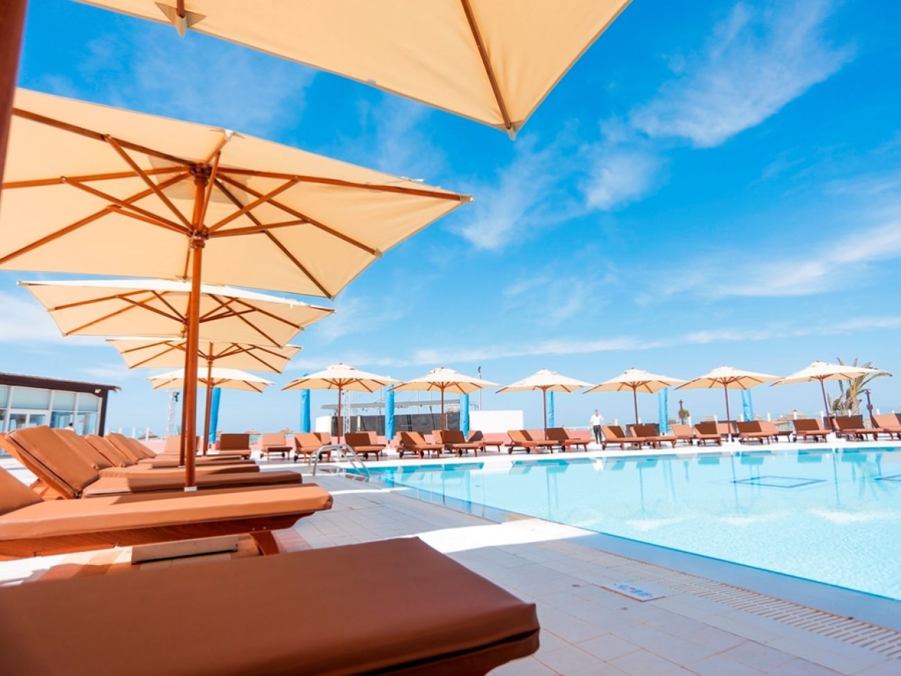 Собствен, пясъчен плаж. Чадъри и шезлонги на плажа и басейна - безплатно, плажни кърпи - срещу заплащане, с депозит.