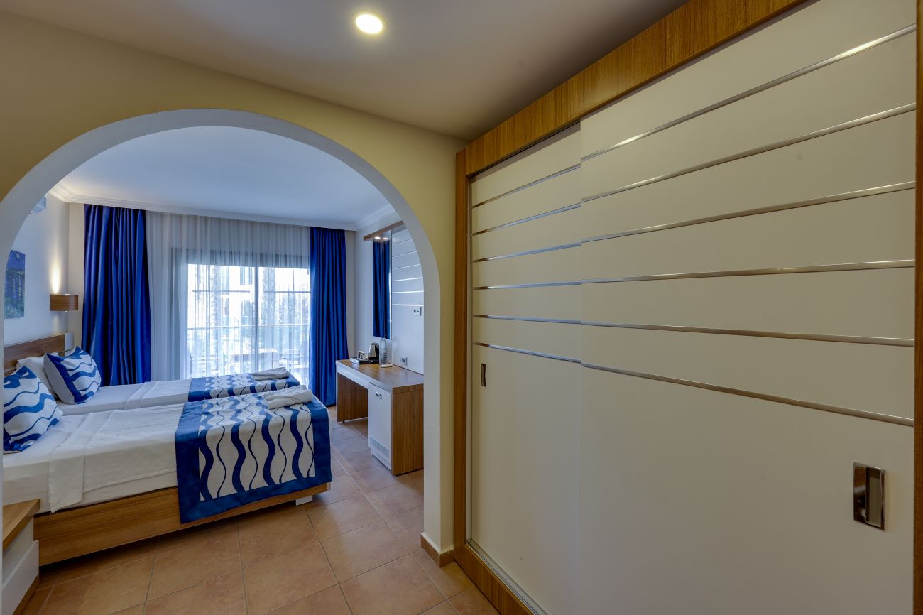 Хотелът разполага с общо 274 стаи, разположени в 3-етажни сгради, от които 33 Club room (нереновирани стаи - 26 м²),178 Hotel room (реновирани стаи, разположени в основен корпус или в триетажни сгради - 26 м²), 28 Club family room (нереновирани стаи, 2 спални, 1 баня - 45 м²) , 35 Family hotel room (реновирани стаи, 2 спални, 1 баня - 45 м²), Disabled Room (пригодени за хора с ограничена подвижност - 26 м²).