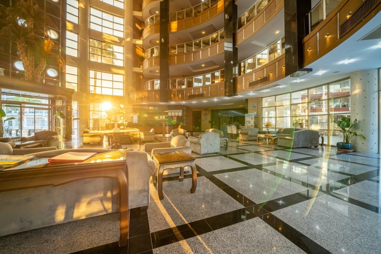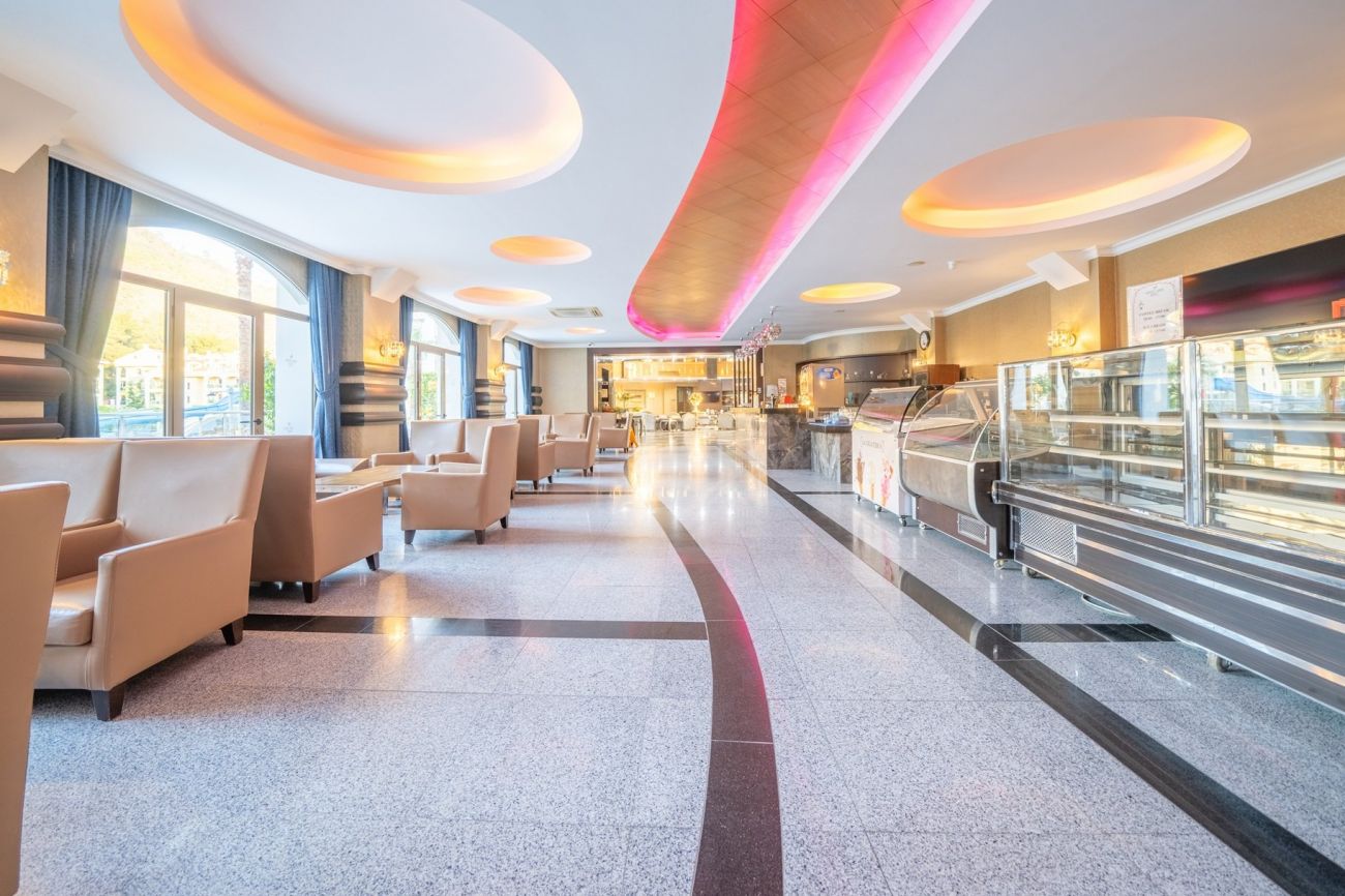 Основен ресторант, 3 бара, открит басейн, закрит басейн, детски басейн, водна пързалка, СПА център, детски клуб, аеробика, билярд, дискотека, анимация, магазини, конферентни зали. Безплатни услуги: сауна ,турска баня, фитнес, WI-FI интернет в лоби, тенис на маса. Платени услуги: билярд, интернет кафе, пералня, лекар, детегледачка ,Спа и Уелнес център Плаж: Градски плаж - Чадъри и шезлонги при басейна – безплатни, а на плажа – платени.
