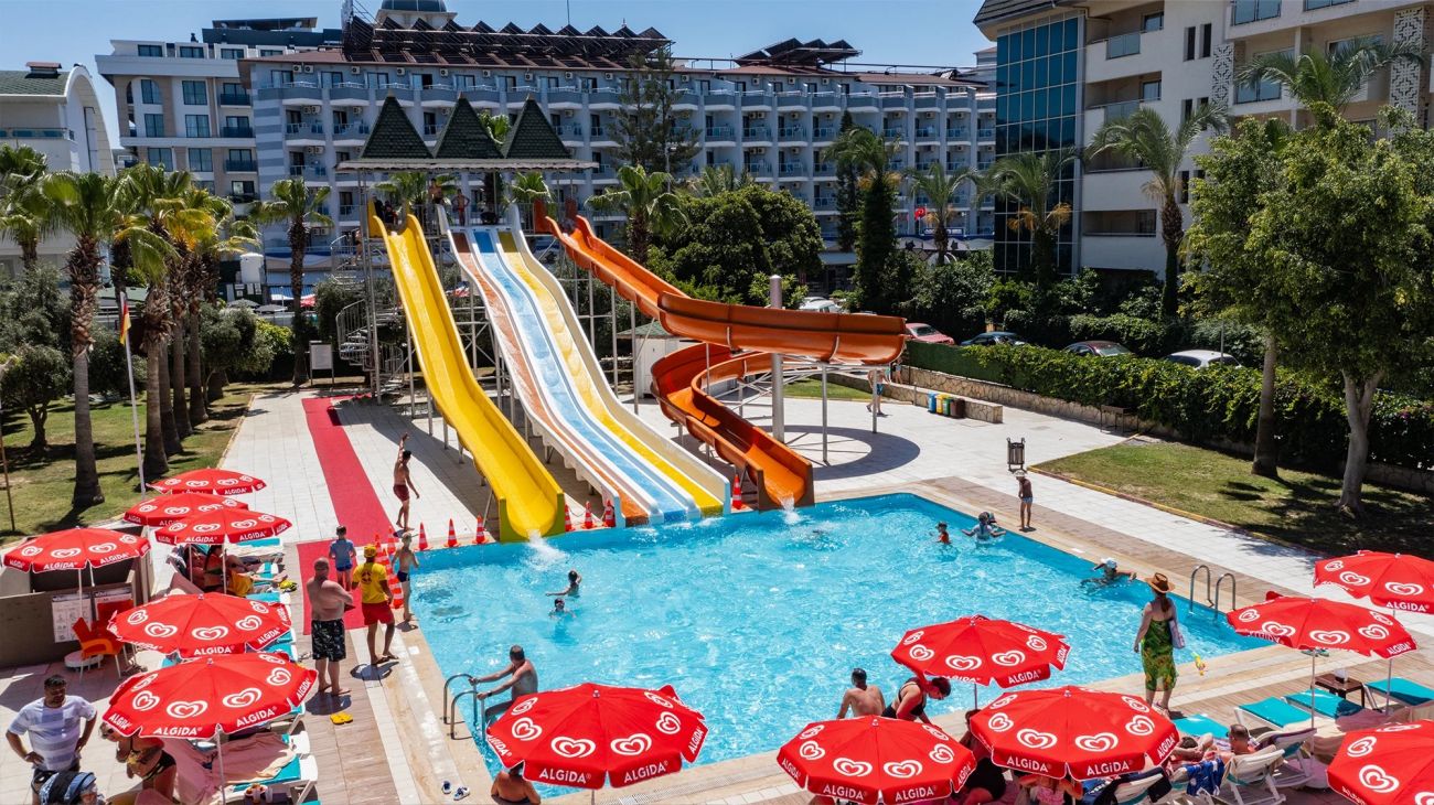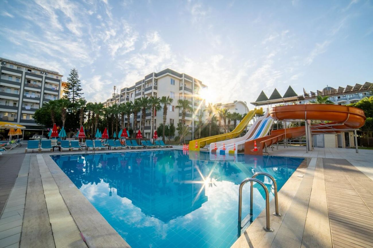 Намира се на 110 км от летище Анталия, на 120 км от центъра на Анталия, на 12км от центъра на Алания, на 1 км от селището Конаклъ, на брега на морето. Построен 2005 г. на обща площ от 17 000 м2. Последно реновиран 2021г.