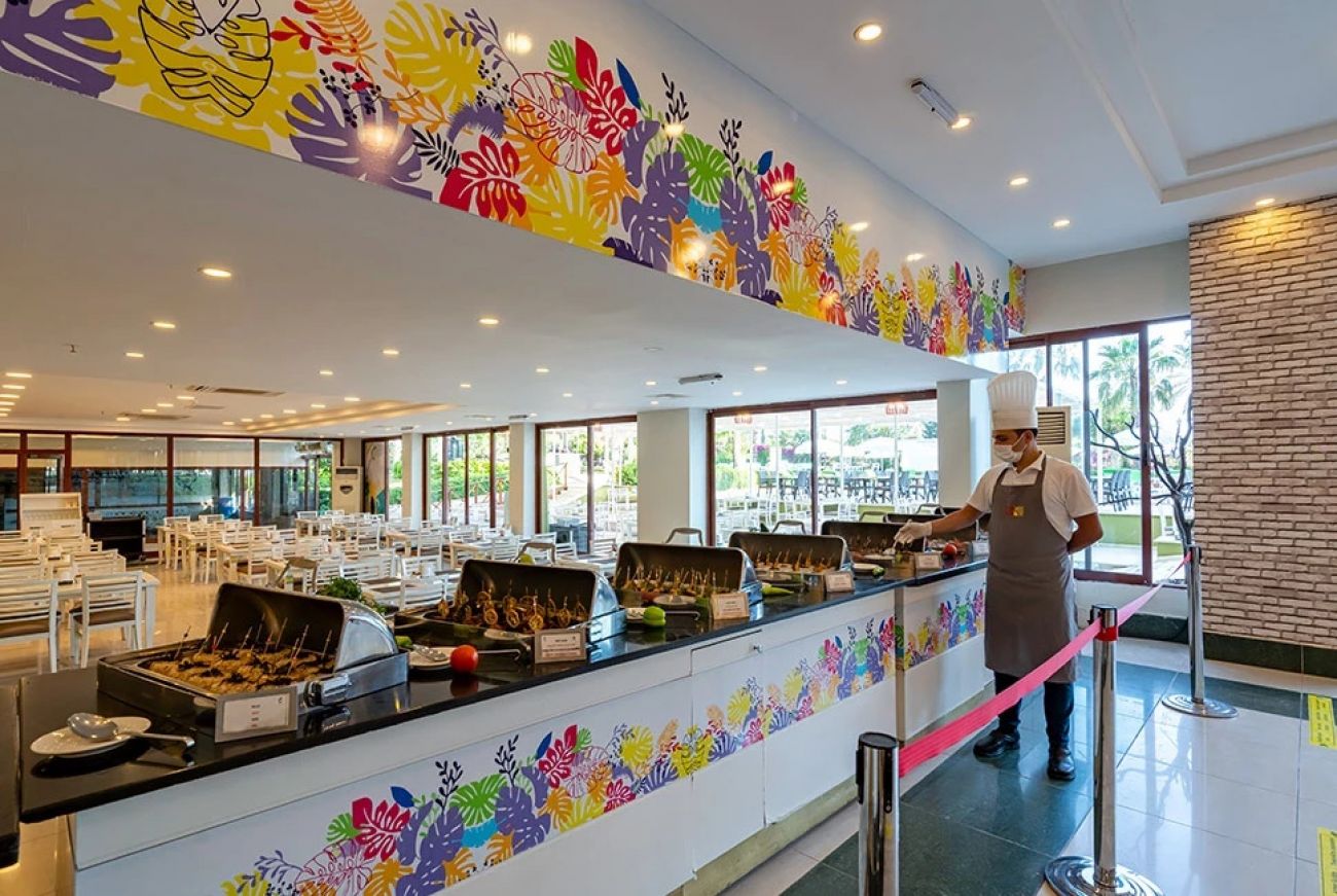 Основен ресторант, 1 а-ла-карт ресторант (Grill Restaurant – 1 безплатно посещение при минимум 7 нощувки, с предварителна резервазия), снек бар, гюзлеме корнър, тематични вечери, 7 бара, 2 открити и 1 закрит басейн, 2 водни пързалки, дискотека, СПА център, конферентна зала, Wi–Fi (в лоби). За децата: Детски открит басейн, мини клуб, детска площадка, детско столче в ресторанта, детегледачка (срещу заплащане). Безплатни услуги: Сауна, турска баня, парна баня, фитнес, тенис корт, тенис на маса, баскетбол, боча, плажен волейбол, водна гимнастика, мини футбол, дартс, лека анимация. Платени услуги: Масаж, химическо чистене, лекар, фотограф, магазини, осветление за тенис корт, водни спортове, рент-а-кар. Плаж: Собствен, на 70 м. от хотела (през път), пясъчно-чакълест. Чадъри и шезлонги на плажа и при басейна – безплатно. Плажни кърпи – срещу депозит.