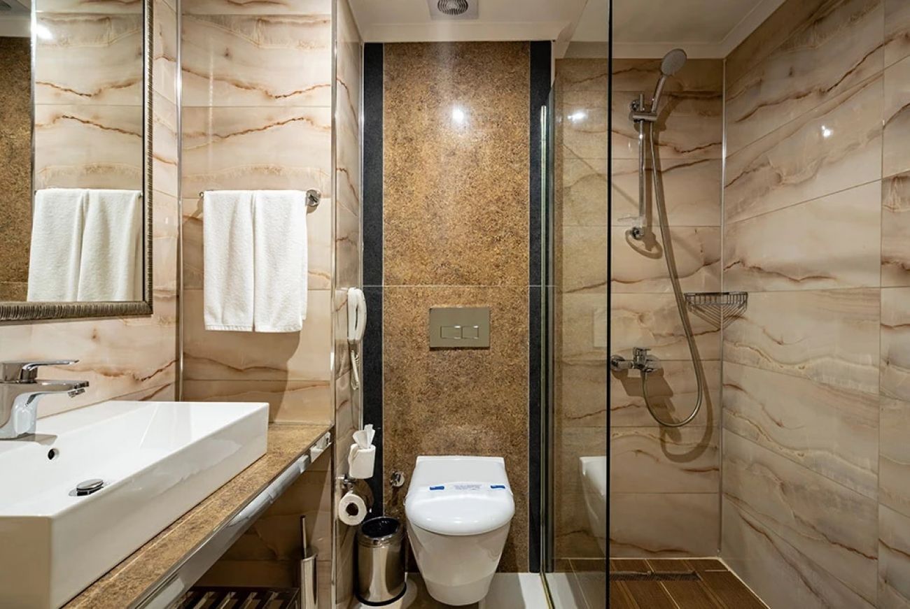 Хотелът разполага с общо 234 стаи, разположени в една 6-етажна основна сграда Main Building, от които 151 стандартни стаи Standard room land view (изглед суша - 30 м2), 40 стандартни стаи Standard room sea view (изглед море - 30 м2), 10 стандартни стаи Bunkbed room (спалня + двуетажно легло - 30 м2), 31 фамилни стаи Family room (2 спални, 1 бяна– 35 м2), 2 стаи за инвалиди. Всички стаи са оборудвани с климатик, телефон, телевизор, баня с душ/вана, минибар (вода и безалкохолни напитки – безплатно, само при пристигане), сет за кафе/чай, сейф (безплатен). Почистване на стаите - всеки ден, смяна на кърпите – при поискване, смяна на спалното бельо – 2 пъти седмично.