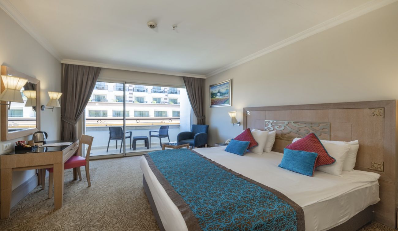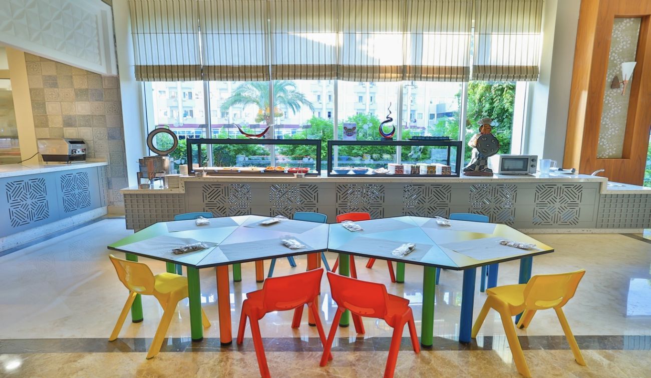 Основен ресторант, а - ла - карт ресторант (с предварителна резервация), 4 бара, 3 открити и 2 закрити басейна, водни пързалки, магазини, СПА център, дискотека, кино, конферентни зали, паркинг. За децата: Детска площадка, мини клуб (4-12 г.), 2 детски басейна – външен и вътрешен, водни пързалки, анимация. Безплатни услуги: Турска баня, сауна, джакузи, фитнес, дартс, тенис на маса, тенис корт (с предварителна резервация), баскетбол, аеробика, водна гимнастика, кино, жива музика, анимация, интернет. Платени услуги: Масаж, фризьор, търговски център, билярд, боулинг, джаги, интернет кафе (с предварителна резервация), видеоигри, химическо чистене, лекар, водни спортове, наем на топки и ракети за тенис, осветление за тенис корта.