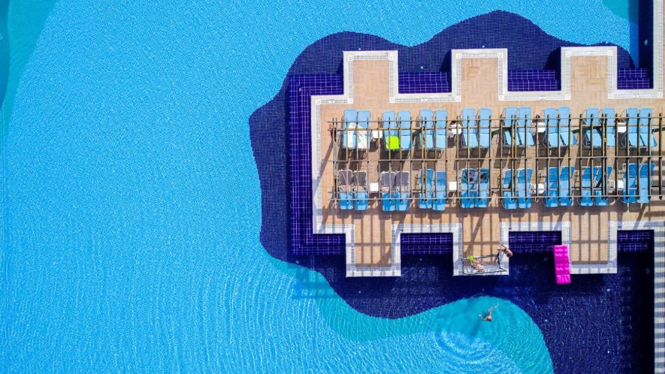Собствен пясъчно-чакълест плаж. Дължината на плажа е 250 м. Шезлонги, чадъри, матраци, плажни кърпи на плажа и при басейна - безплатно.