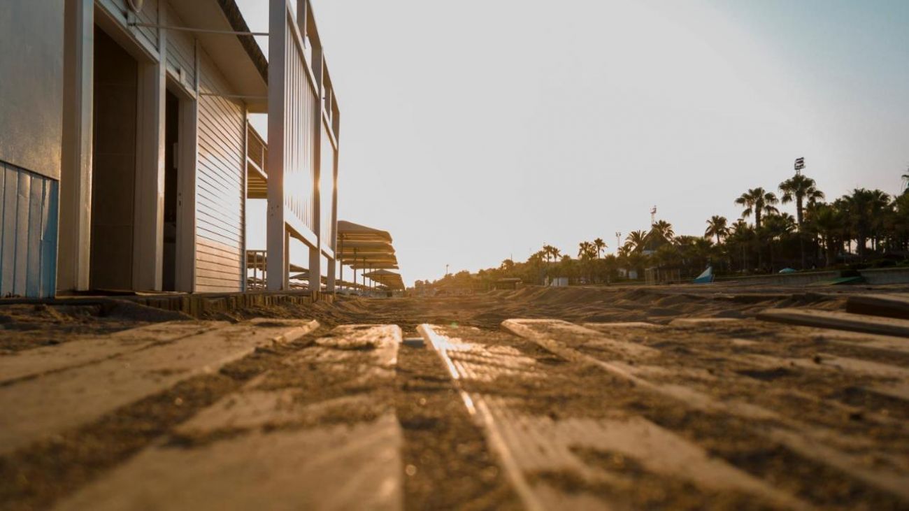 Собствен, пясъчен, с дължина на плажната ивица 500 м. Чадъри, шезлонги, матраци и плажни кърпи на плажа и при басейна - безплатно.