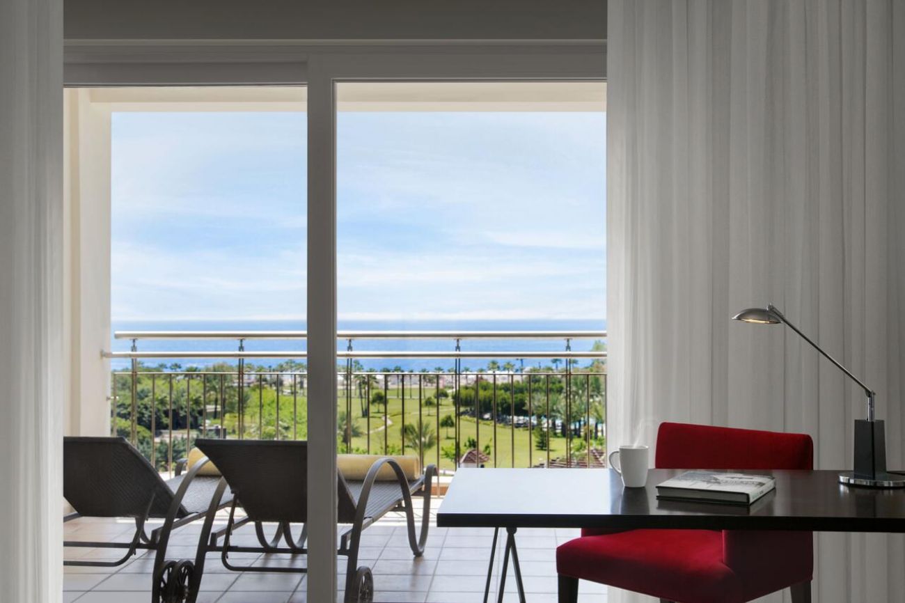 Стаи Main building: 74 Deluxe Room with Partial Sea View (частичен изглед море - 38м2), 84 Deluxe Room with Partial Sea and Pool View (частичен изглед море и басейн - 38м2), 36 Deluxe Room with Sea View (изглед море - 48 м2), 16 Corner Suite with Jacuzzi & Sea View (спалня, баня, тераса с джакузи - 48 м2), 4 Designer Suite (спалня и хол разделени с врата, баня, кафе Nespresso, тераса с джакузи - 68 м2), 3 Grand Designer Suite (изглед море, спалня и хол разделени с плъзгаща врата, 2 бани, кафе Nespresso, тераса с джакузи - 106 м2), 3 Designer Suite 360 (спалня с кръгло легло, баня, кафе Nespresso, тераса с джакузи - 55 м2).