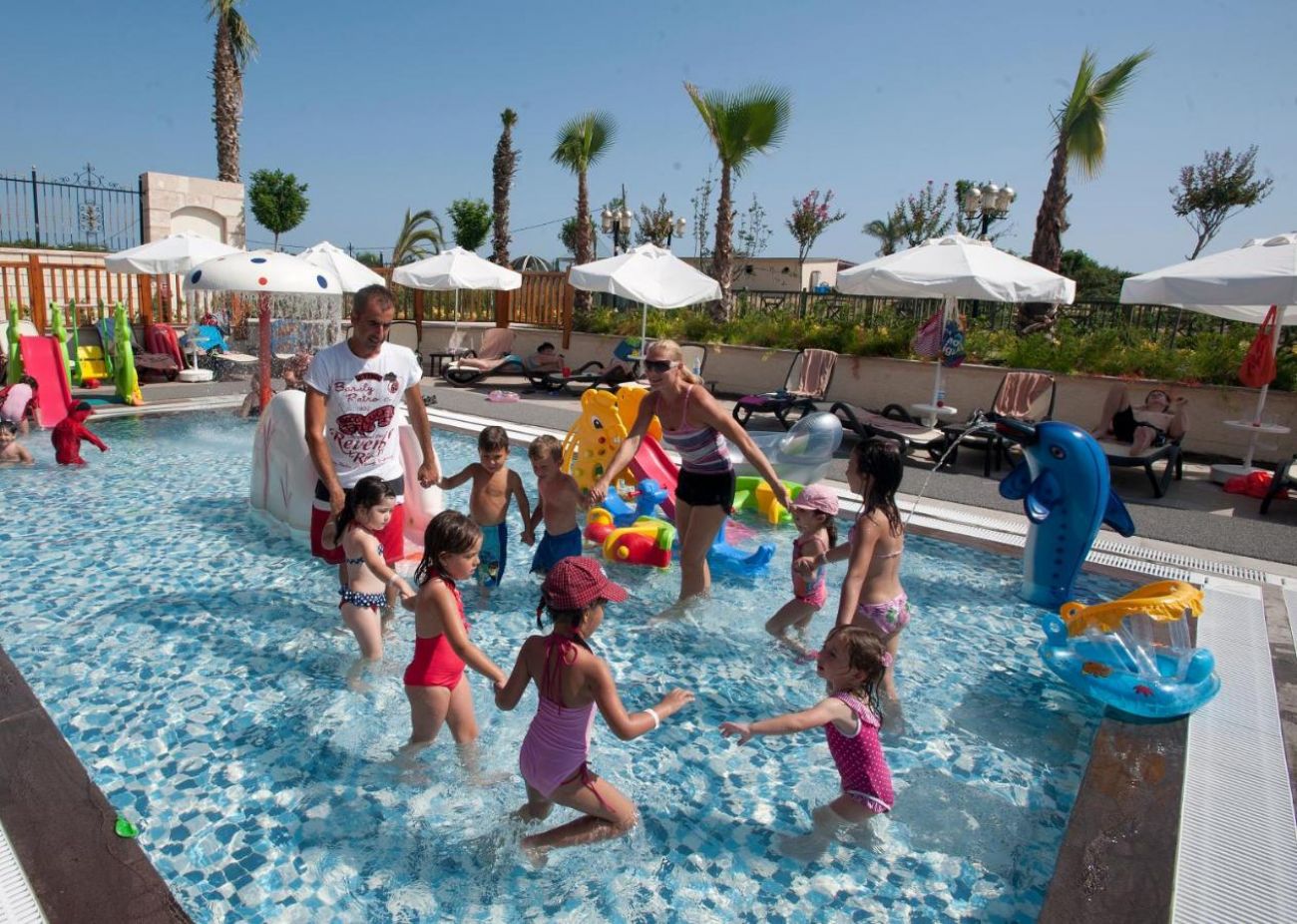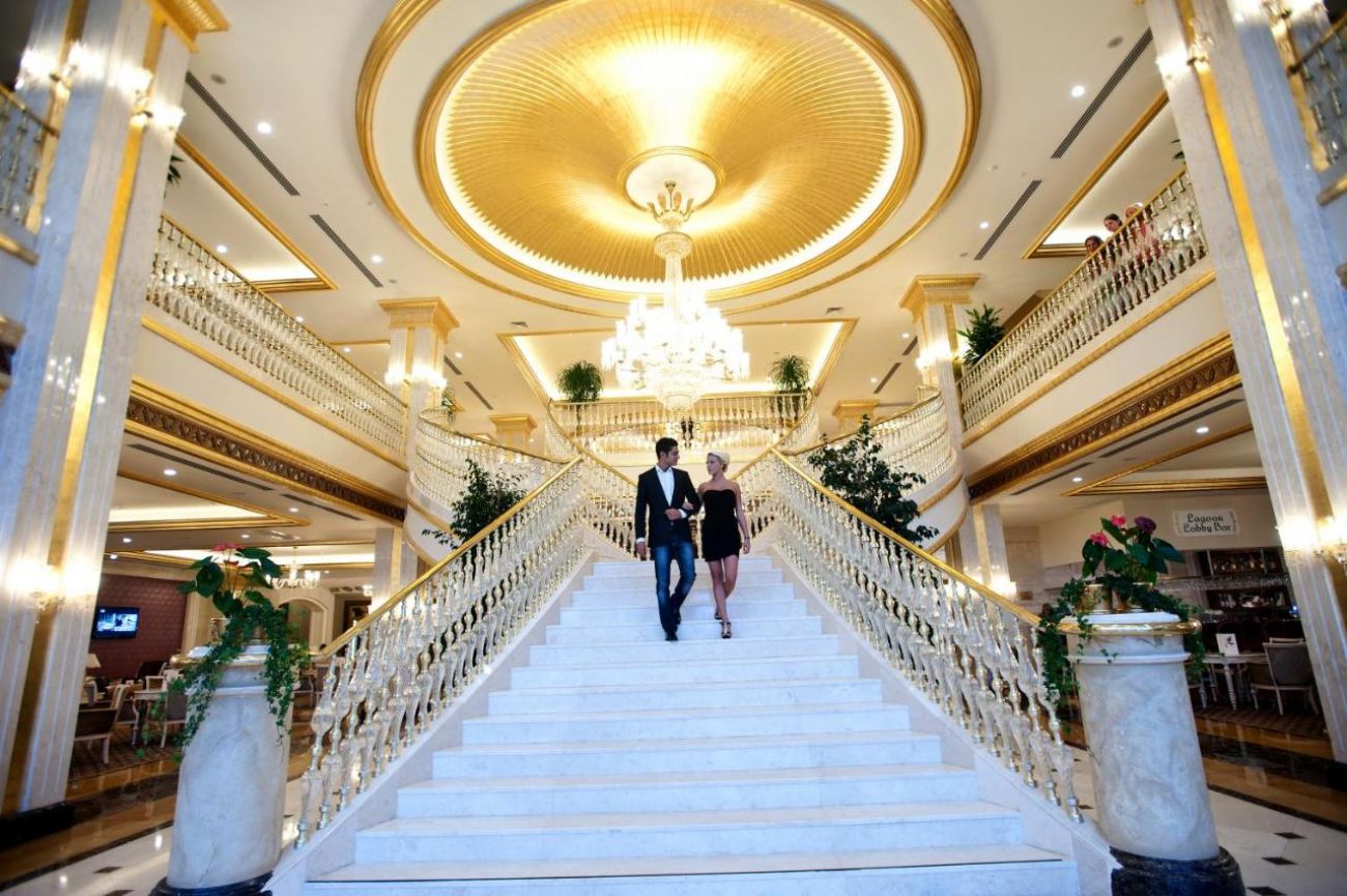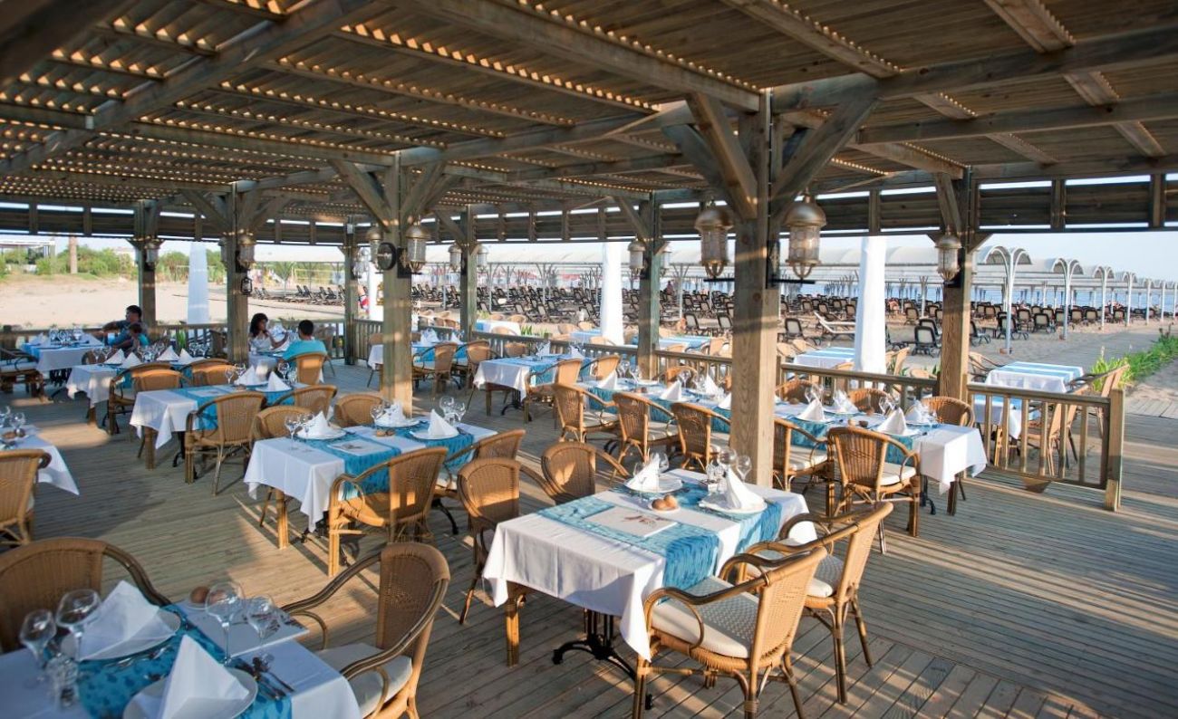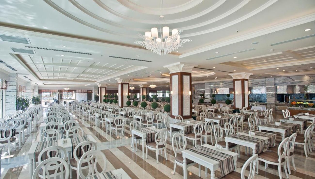 Основен ресторант с диетично и вегетарианско меню, 5 ресторанта a - лa - карт (италиански, турски, рибен, мексикански, китайски), 6 бара, открит басейн, закрит басейн, 3 водни пързалки, кинотеатър, лекарски кабинет, SPA - център, фризьор, магазини,2 конферентни зали. За децата: детско меню, детски басейн, аквапарк, детски мини клуб(4-12г.), младежки клуб(13-16г.) Безплатни услуги: турска баня, сауна, вътрешен басейн, тенис на корт, тенис на маса, дартс, мини голф, баскетбол, фитнес зала, Интернет. Платени услуги: масаж, билярд, боулинг, кан, водни спортове, фризьор, СПА - център.