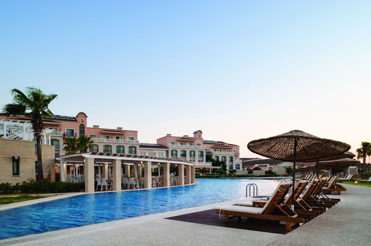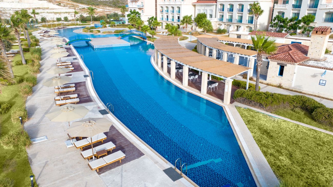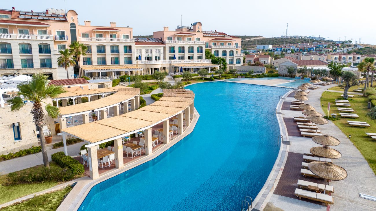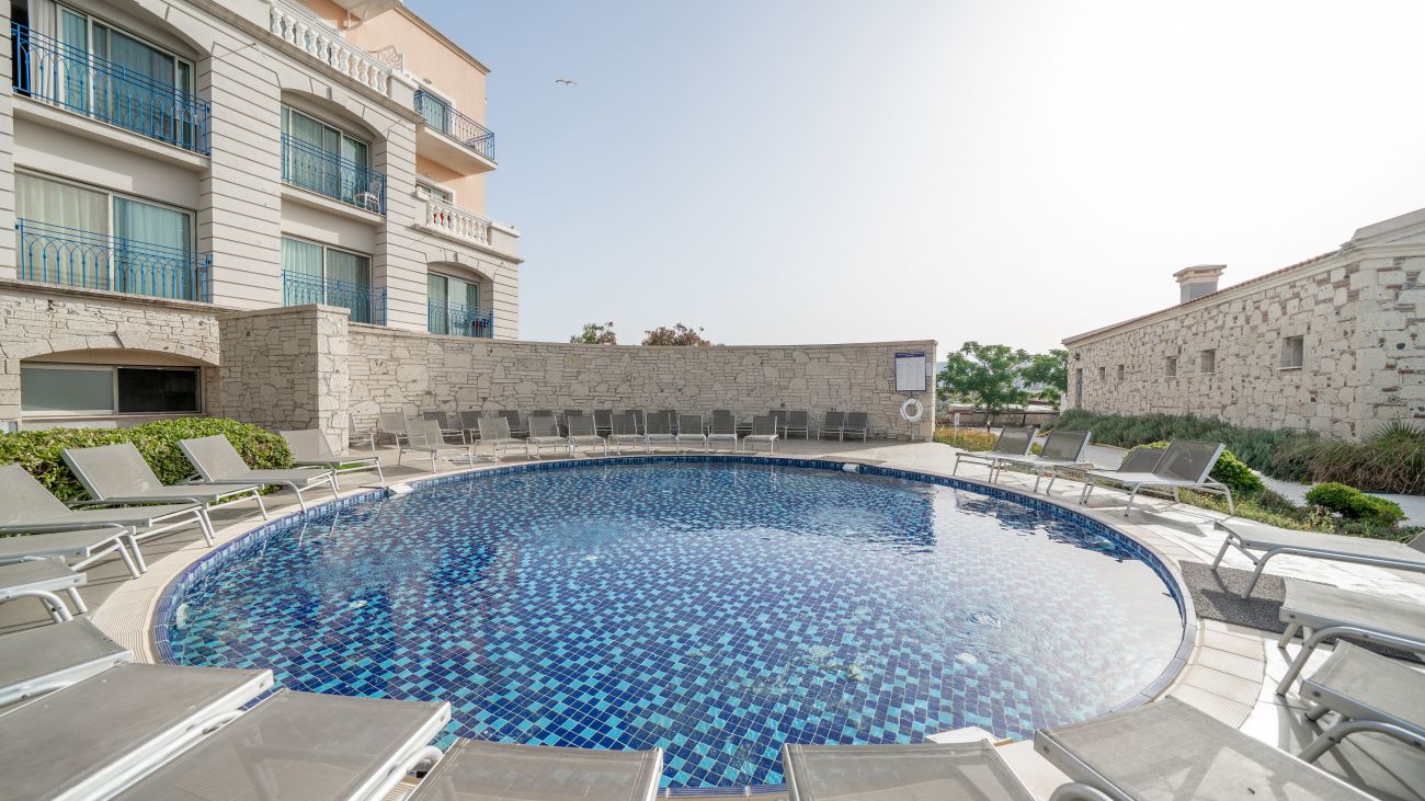 Хотелът се намира на 85 км от летище Измир, на 12 км от центъра на Чешме, на 7 км крепостта на Чешме, на 6 км от центъра на Алачати, на 8 км от известния плаж Ълъджа, на брега на морето. Реновиран 2024 година.