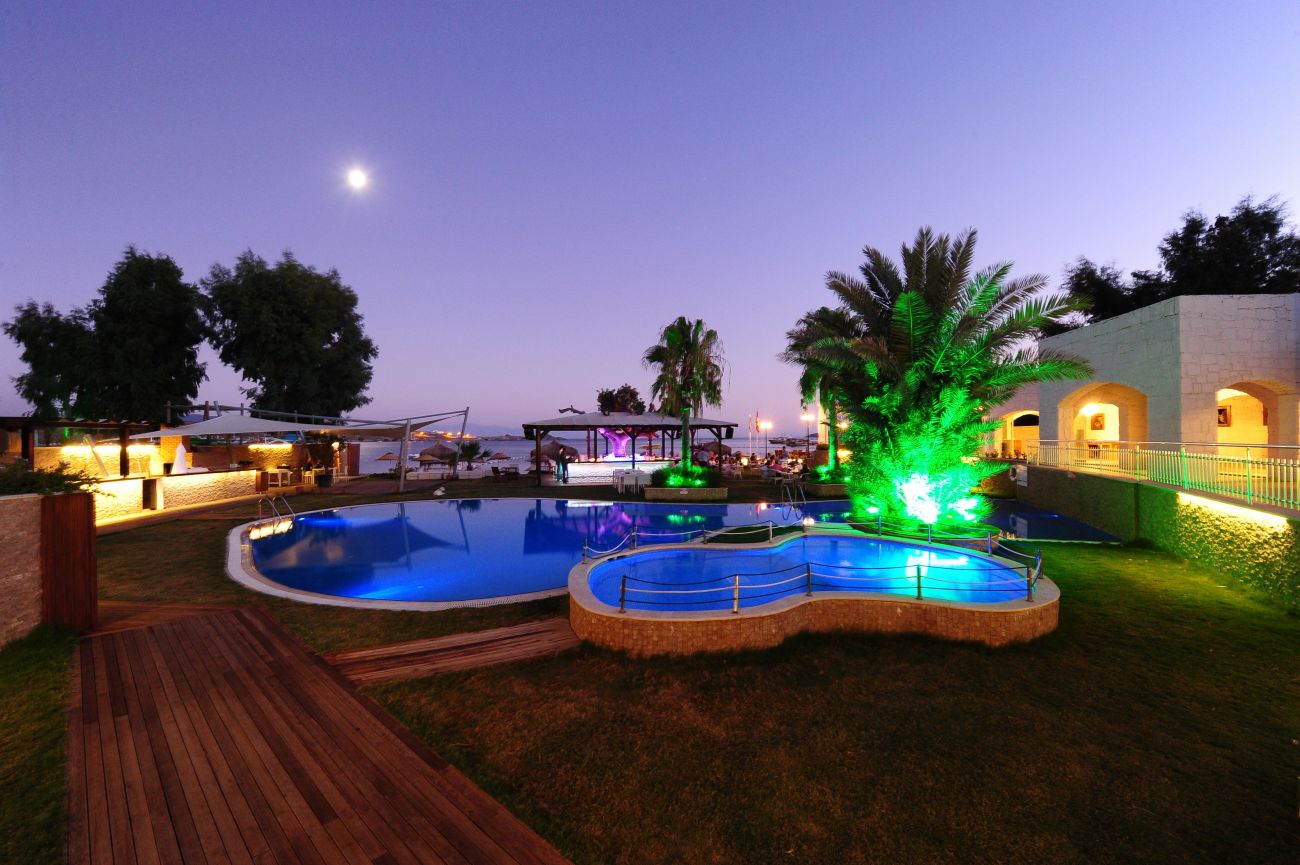 Намира се на 37 км от летище Бодрум, на 3 км от центъра на Бодрум, на 1 км от центъра на Гюмбет, на брега на морето. Построен 2005 г., на обща площ от 5 500 m².
