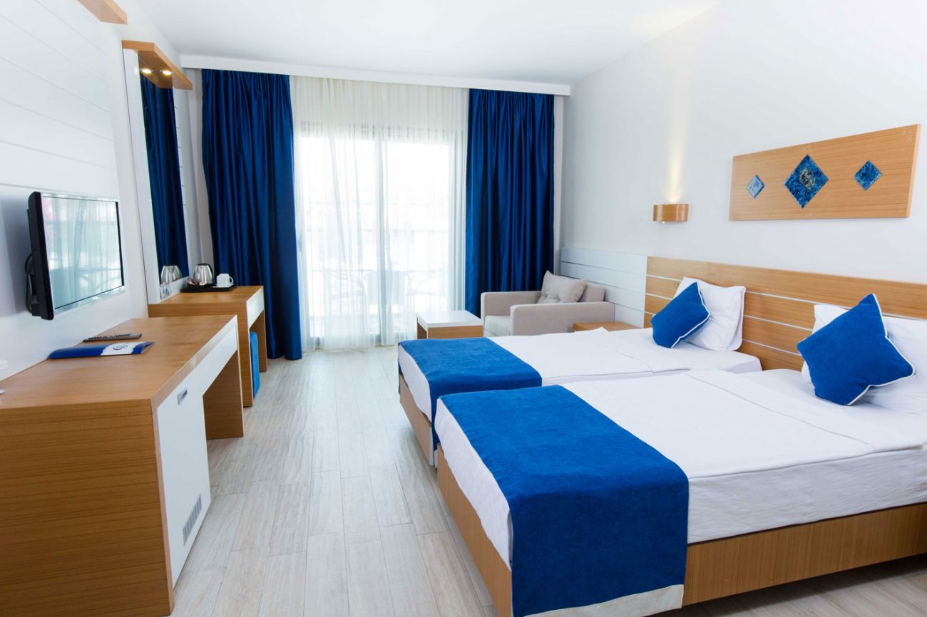 Хотелът разполага общо с 274 стаи от които: 178 Hotel Room, 35 Hotel Family Room, 33 Club Room, 28 Club Family Room - клубните стаи са разположени в двуетажни сгради. Всички стаи са оборудвани са с климатик, телевизор, телефон, сешоар, мини бар (вода при пристигане), сейф (безплатен), сет за кафе/чай, балкон. Почистване на стаите - всеки ден, смяна са бельото и кърпите - 2 пъти в седмицата.