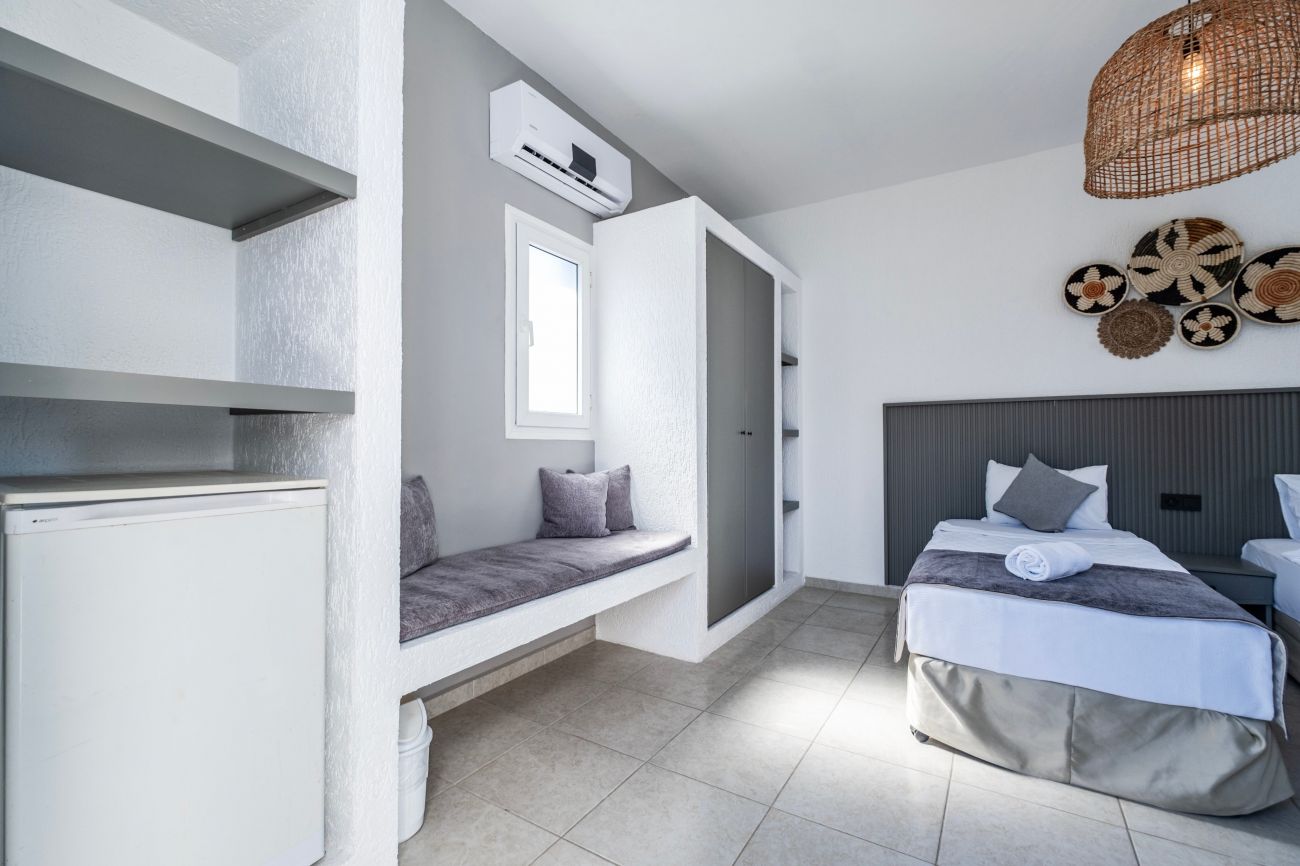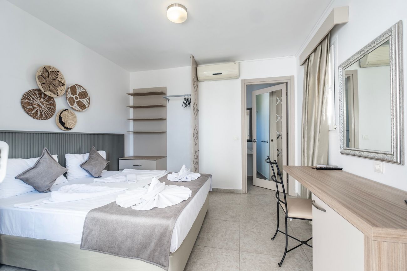 Хотелът разполага общо с 61 стандартни (18 m²) и фамилни (36 m²) стаи, разположени в двуетажни сгради. Всички стаи са оборудвани с климатик, телевизор, телефон, баня с душ/вана, сешоар, мини бар (празен), тоалетни принадлежности, балкон или тераса. Почистване на стаите - всеки ден, смяна на спално бельо - 2 пъти в седмицата.