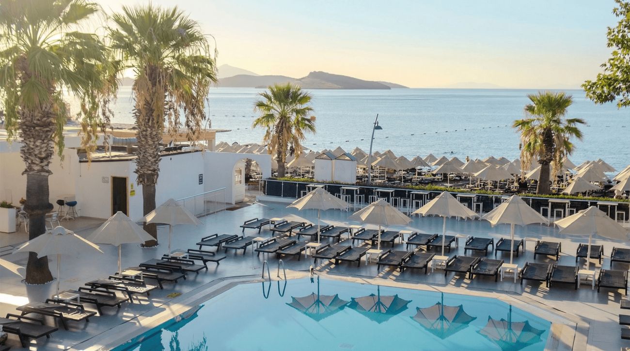 Намира се на 47 км от летище Бодрум, на 11 км от центъра на Бодрум, в район Ортакент, на брега на морето. Построен 1990 г., на обща площ от 17.000 м². Реновиран 2024 г.