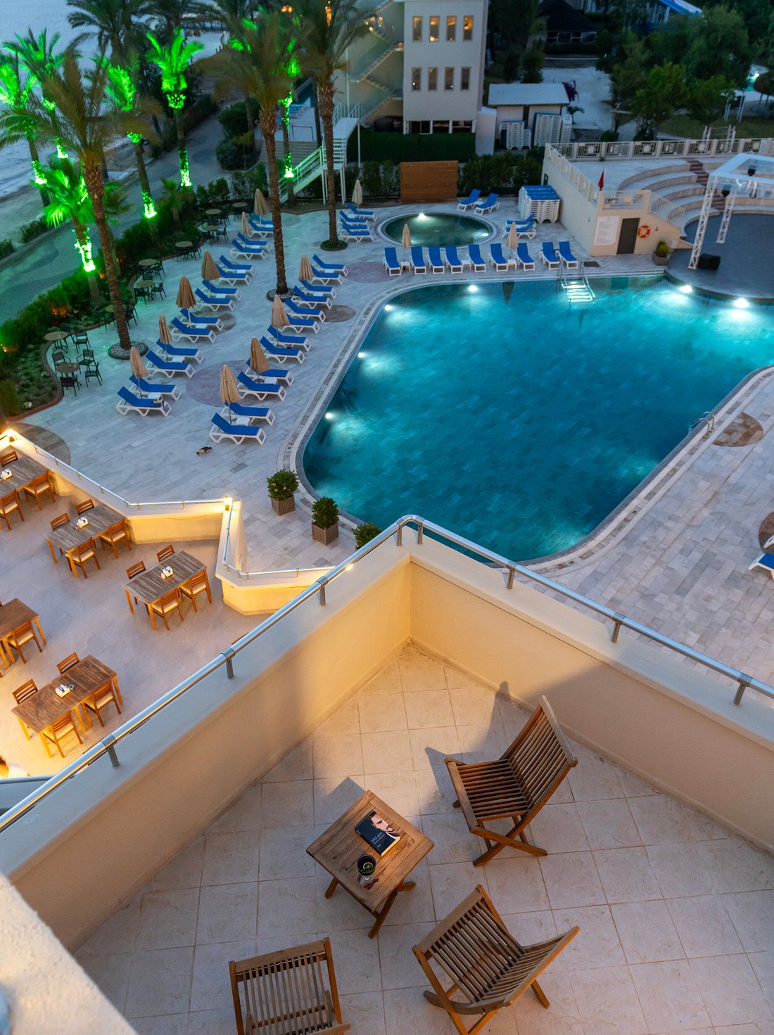 Хотелът е разположен на 50 км от летище Милас, на 20 км от центъра на Бодрум, в района Тургутрейс, на 1 км от центъра на Тургутрейс, на брега на морето. Разполага с площ от 30.000 m², последно реновиран изцяло през 2022/3 година.
