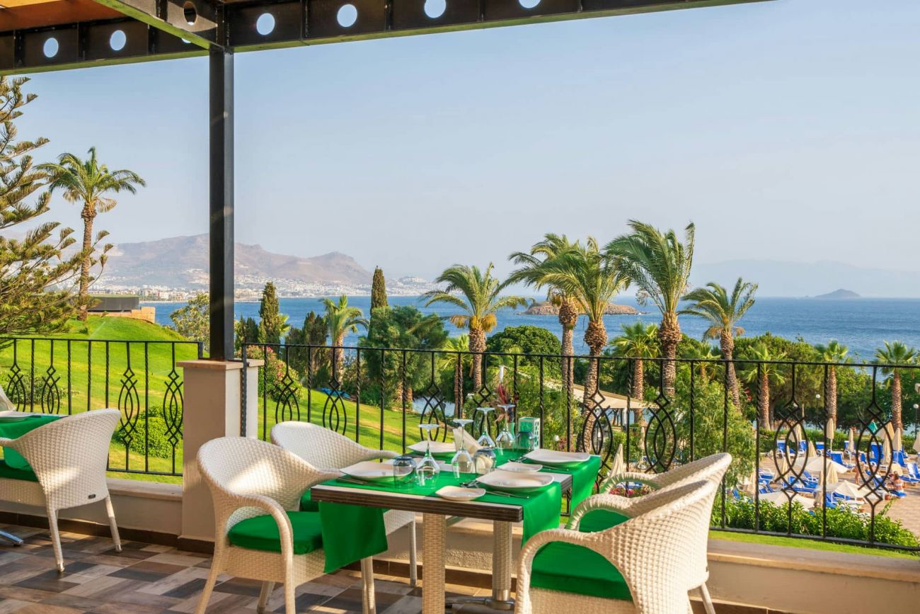 Основен ресторант Myndos, 4 а-ла-карт ресторанта (рибен Oceania, турски Sultan, италиански La Perla, световна кухня Ela Lounge; с предварителна резервация; едно безплатно ползване при минимален престой от 5 нощувки), 7 бара (Lobby Bar - който работи 24 часа; Coffe Corner, Arena Pool Bar, Central Snack Bar, Sultan Snack Bar, VIP Pier Cabana (платен) и VIP Beach Cabana (платен), 3 открити басейни (от които 1 релакс) и 1 закрит басейн със солена вода, 3 водни пързалки, анимация, СПА център с територия от 2500 м2, дискотека, магазини, 6 конферентни зали, паркинг, 24-часова рецепция, Wi-Fi (безплатен на цялата територия на хотела).