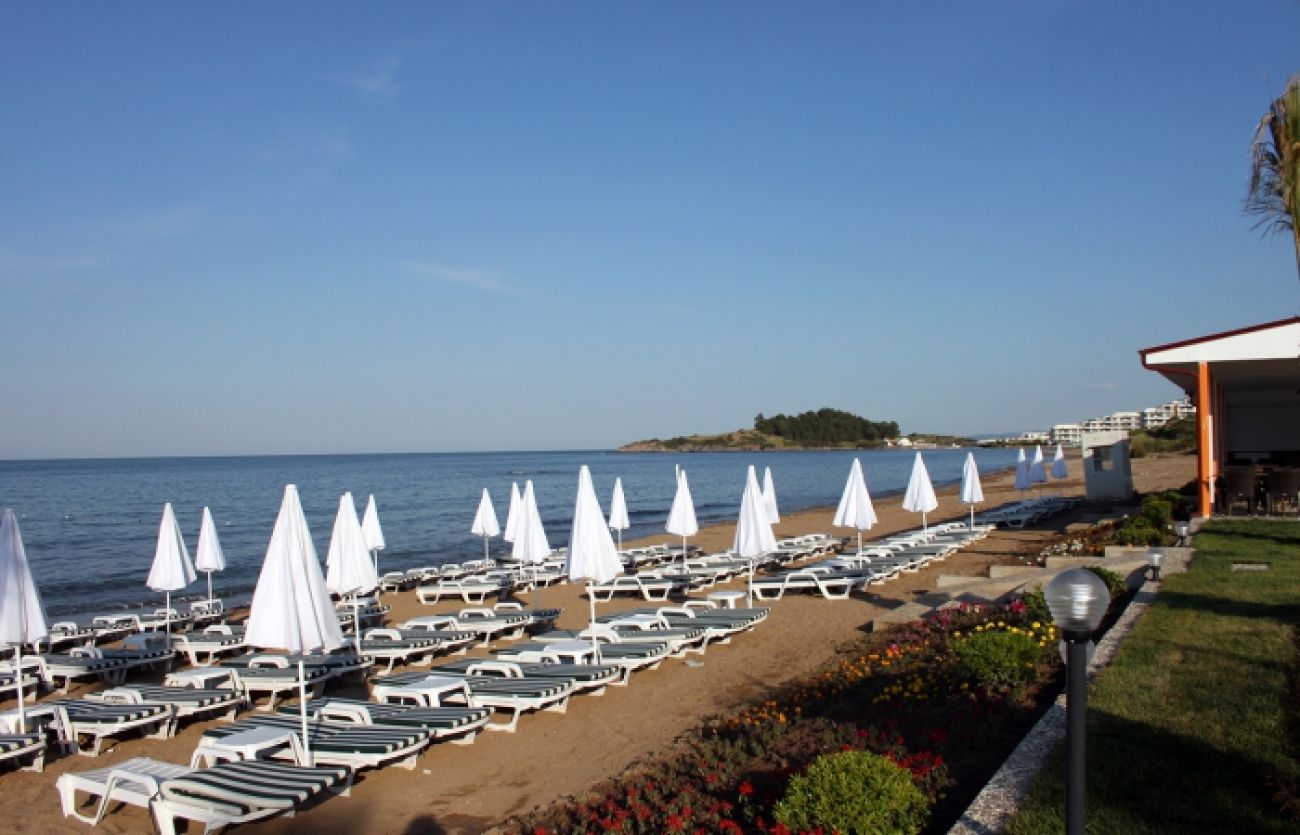 Собствен, пясъчен плаж. Чадъри, шезлонги и матраци при басейна и на плажа - безплатно, плажни кърпи - срещу депозит.