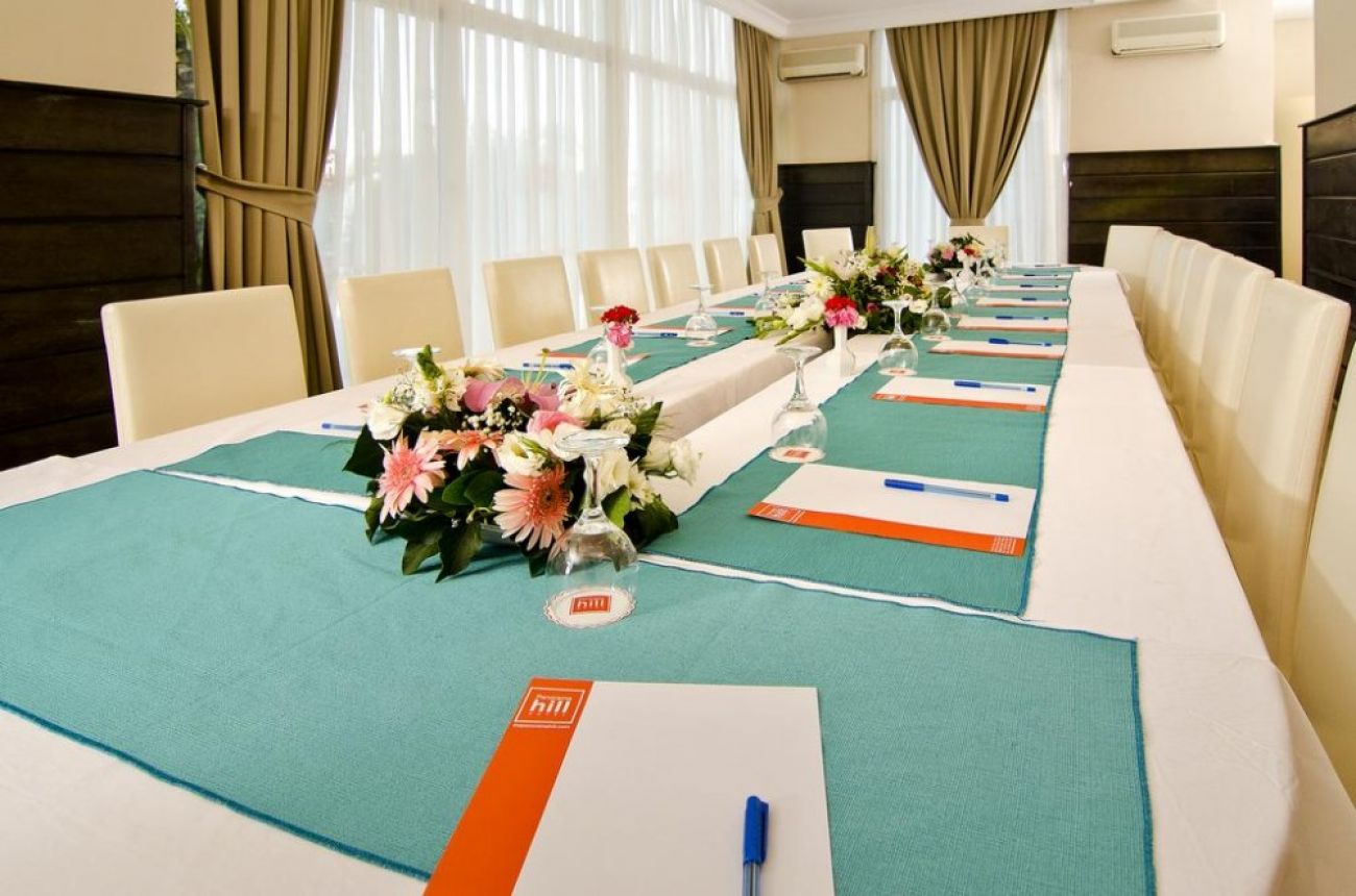 Основен ресторант, 2 бара, открит басейн, детски басейн, конферентна зала, магазин.