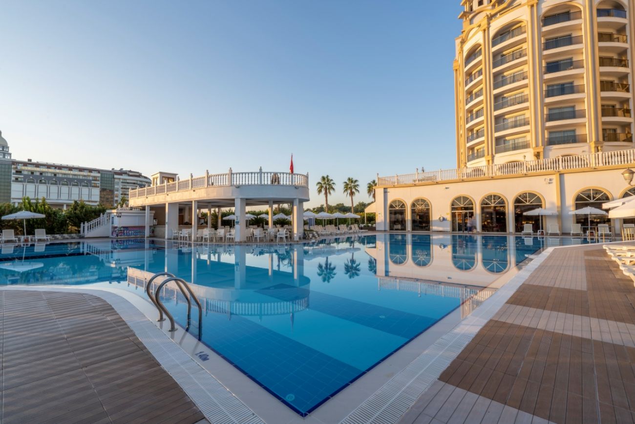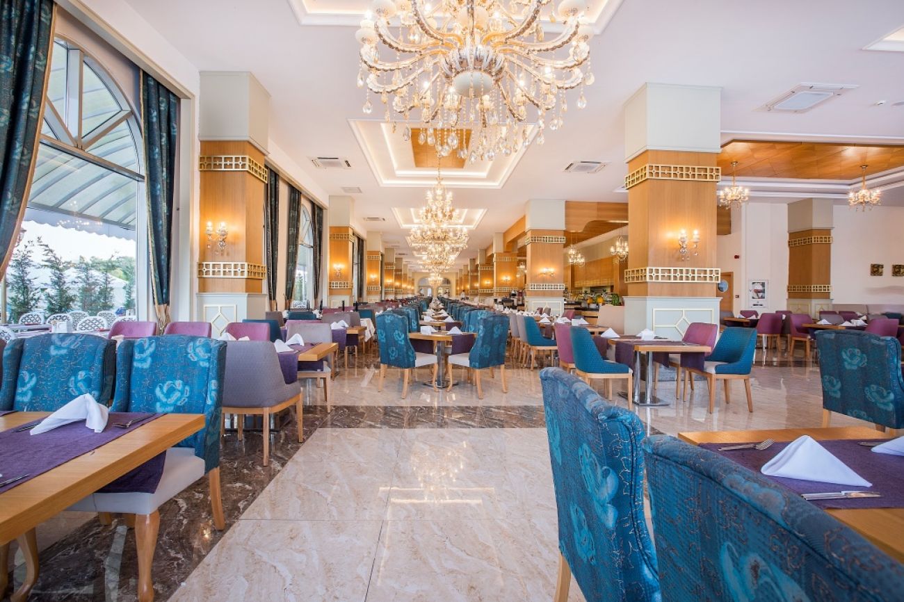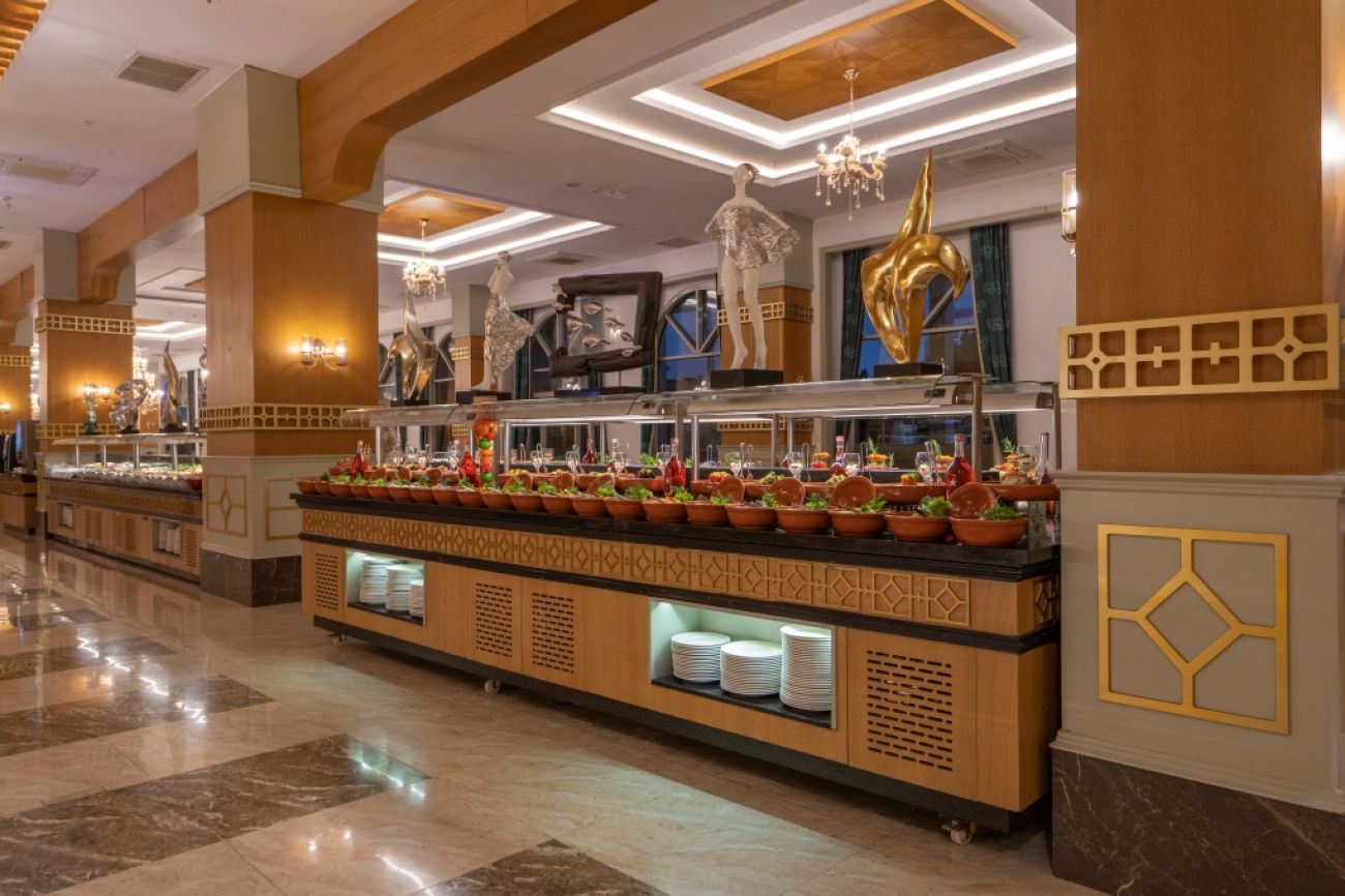 Основен ресторант, 4 а-ла-карт ресторанта (с предварителна резервация - италиански, далекоизточен и османски; мексикански - с доплащане), 7 бара, сладкарница, 2 открити басейна, закрит басейн, водни пързалки, магазини, СПА център, фитнес център, дискотека, паркинг, конферентни зали, WI-FI. За децата: детско меню, детски басейн, водни пързалки, детска площадка, мини клуб (4-7 г.), младежки клуб (8-12 г.), детско кино, мини диско, анимация. Безплатни услуги: сауна, турска баня, парна баня, фитнес, дартс, тенис на маса, плажен волейбол, мини голф, аеробика, водна аеробика, босиа, йога, мини библиотека, анимация, WI-FI. Платени услуги: масаж, фризьор, магазини, игрална зала, компютърни игри, билярд, химическо чистене, лекар, детегледачка, интернет кафе, уроци по сърф, водни спортове.