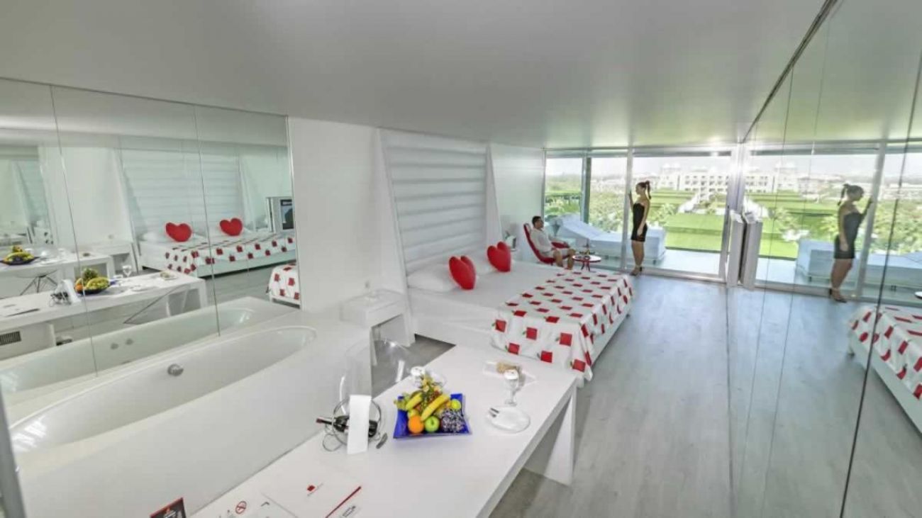 Стаи Villas: 45 Dublex Swim up (с изглед градина или басейн - 1 спалня, 1 хол, 1 сауна, 2 бани (1 парна баня + 1 баня с душ), 1 гардеробна, тераса с достъп до общ басейн, 9 Adam Villa (с изглед градина или басейн - спалня, хол + eдинично легло, 1 сауна, 2 бани (1 парна баня + 1 баня с душ), тераса с достъп до общ басейн - 175 м2), 10 Eve Villa (с изглед градина или басейн - 1 голяма спалня, 1 допълнителна спалня, 1 хол, 1 сауна, 2 бани (1 парна баня + 1 баня с душ, 1 тераса за плуване - 200 м2), Presidential Party Villa (1 голяма спалня, 2 допълнителни спални, 1 хол, 1 бар, 1 кухня, 2 сауни, 3 бани с 1 парна баня, 3 гардеробни - 500 м2, частична градина и частен басейн - 80 м2).