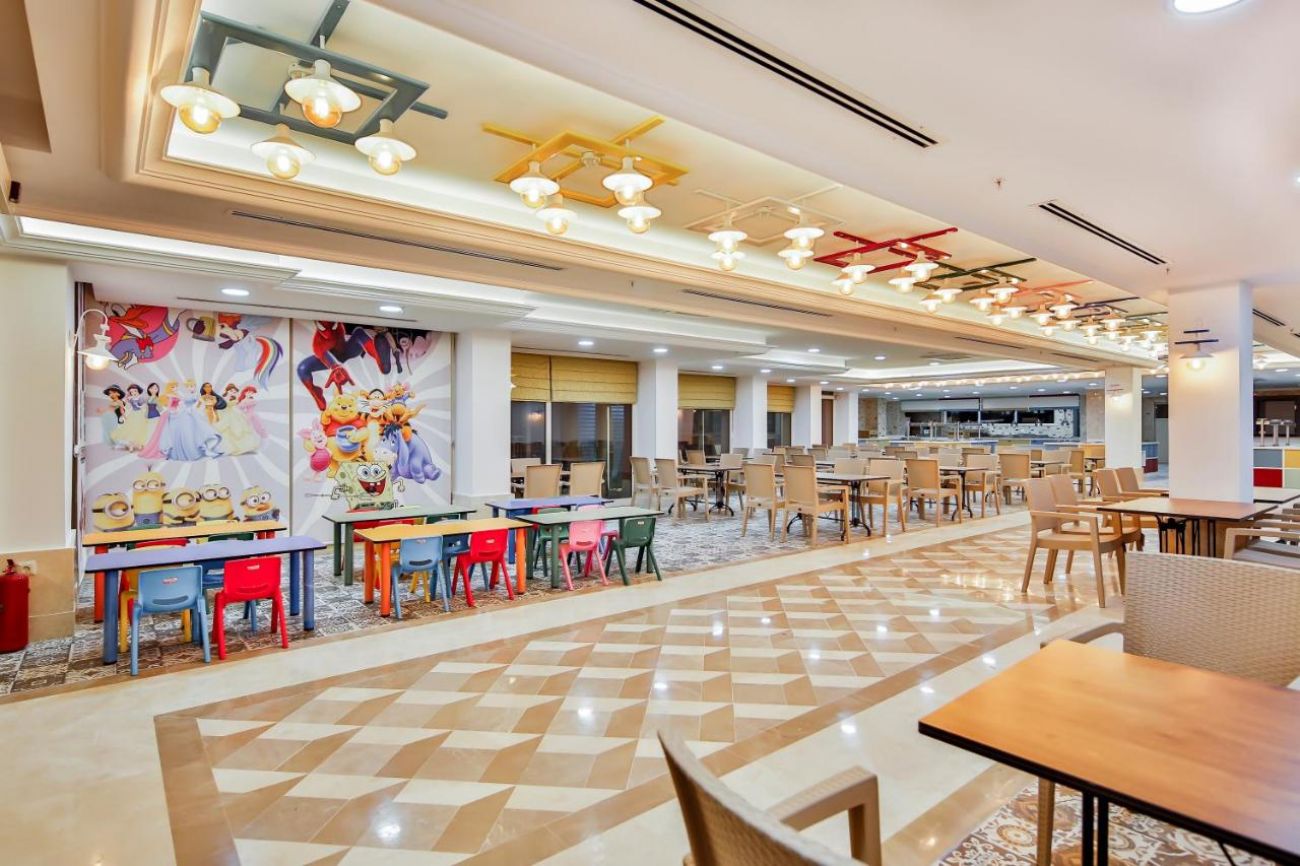Основен ресторант, ресторант на плажа, павильон за гьозлеме, 2 а ла карт ресторанта - турски, рибен (платен), сладкарница, 4 бара, открит басейн, 2 пързалки за деца и 3 за възрастни, дневна и вечерна анимация, сауна, хамам, фитнес, дартс, аеробика, плажен волейбол, магазини.