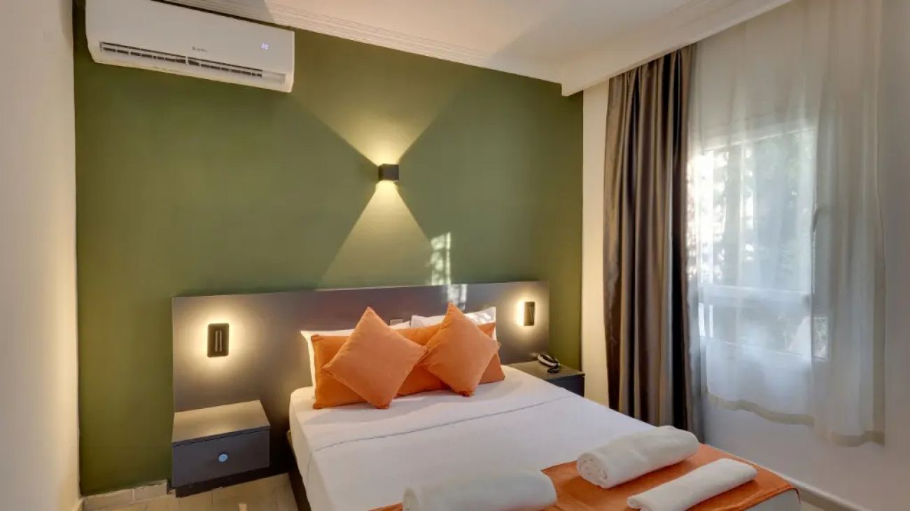 Хотелът разполага с общо 74 стаи - 58 Standard Room (25m2), 16 Superior Room (35m2). Всички оборудвани с климатик, телевизор, телефон, баня с душ, мини бар (празен), френски балкон или тераса. Почистване на стаите - всеки ден, смяна на спалното бельо и кърпите - на 3 пъти в седмицата.